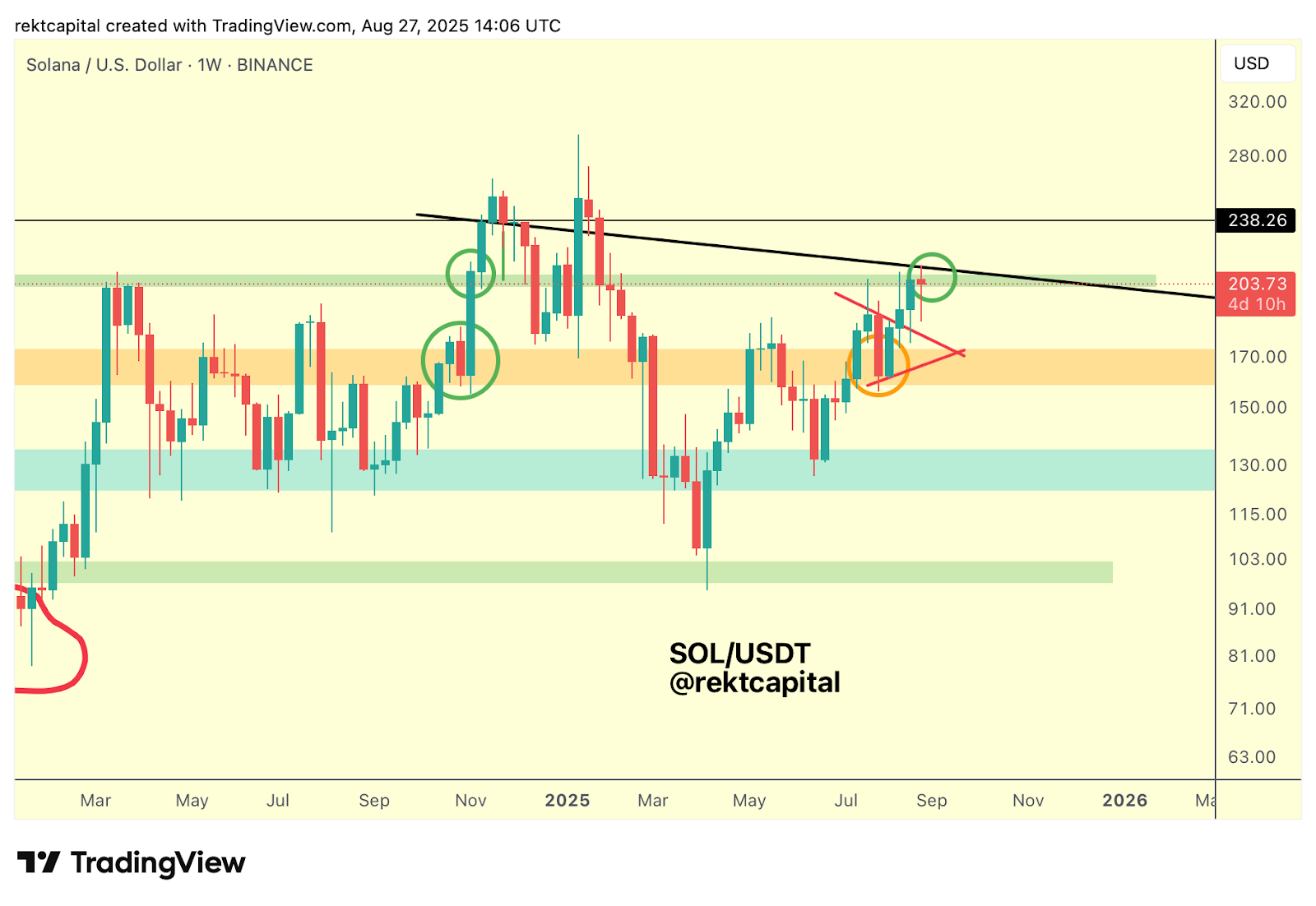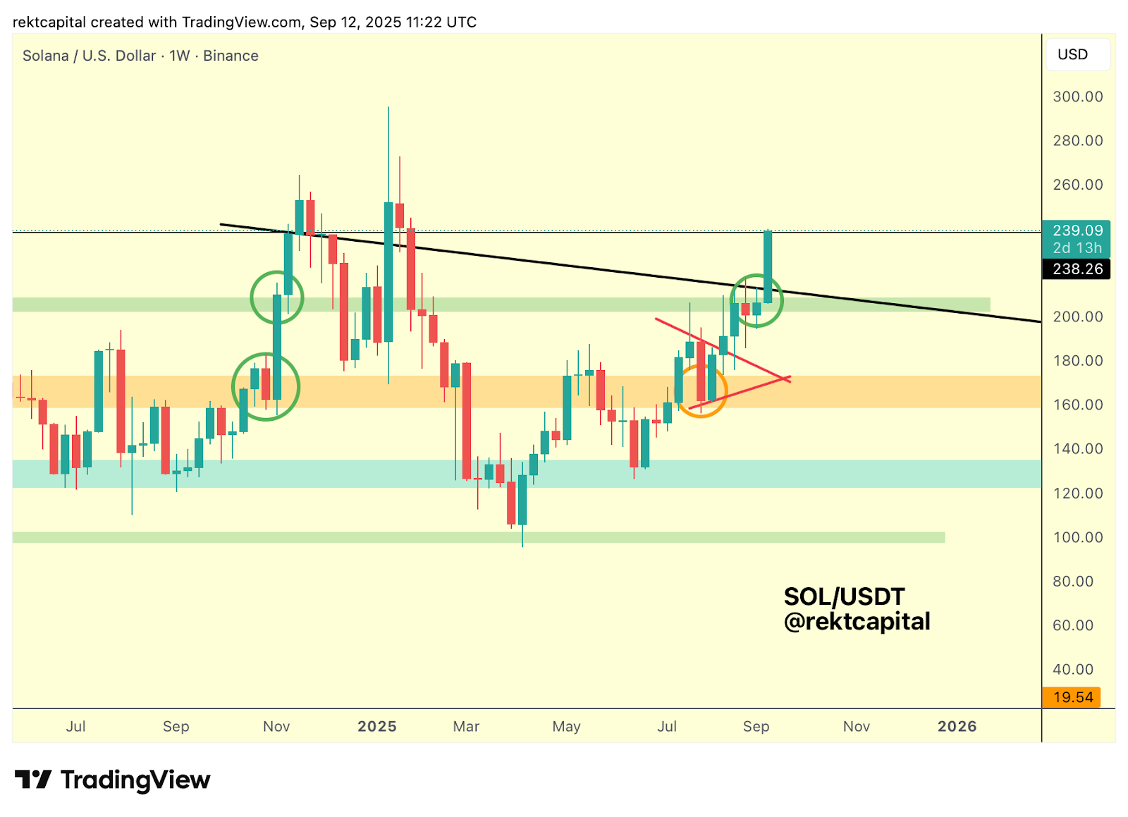 Clearing this resistance stack step by step, first the downtrend, then $238.26, and finally the wick highs, is necessary before Solana can fully open the door to potential new All Time Highs: