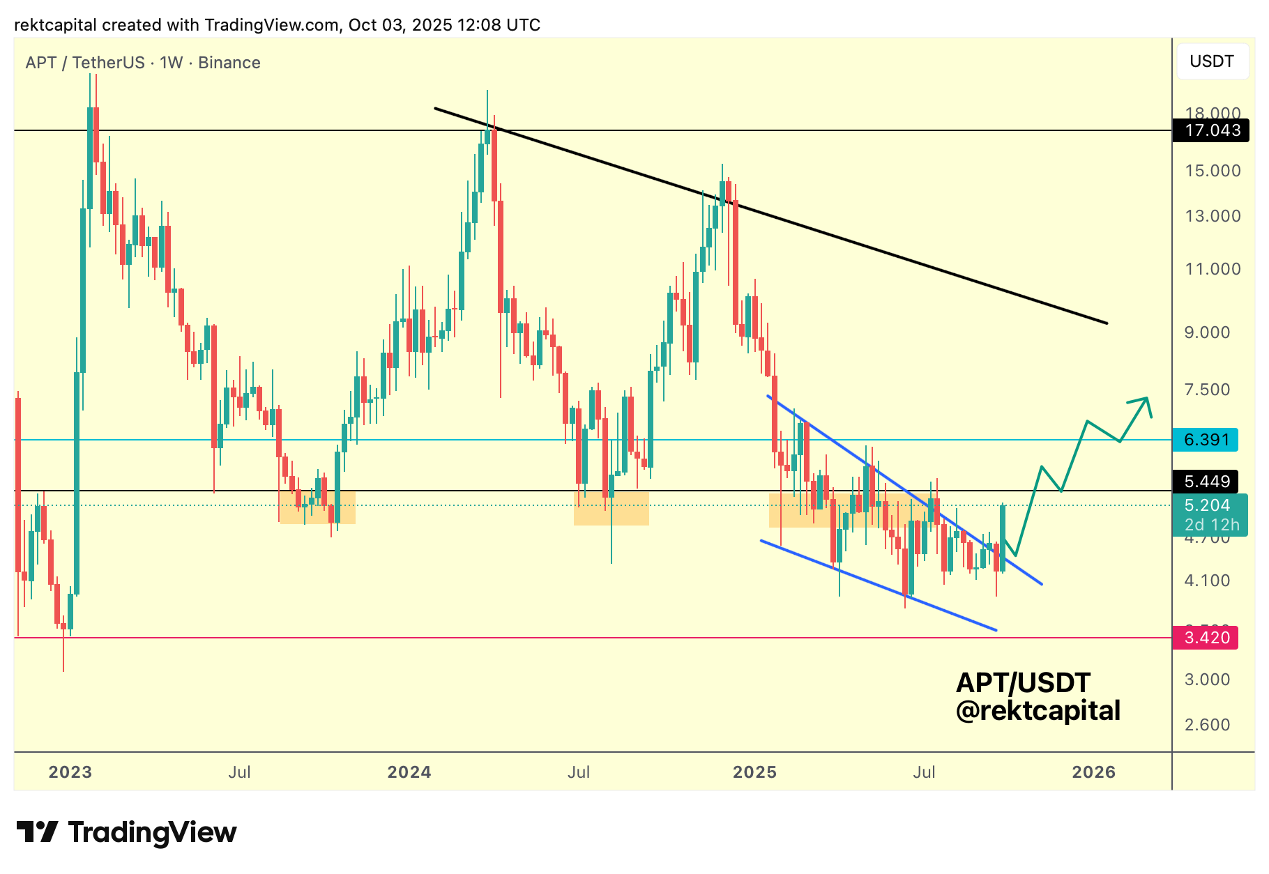 Since then, Aptos has finally produced movement, breaking out of the Falling Wedge.