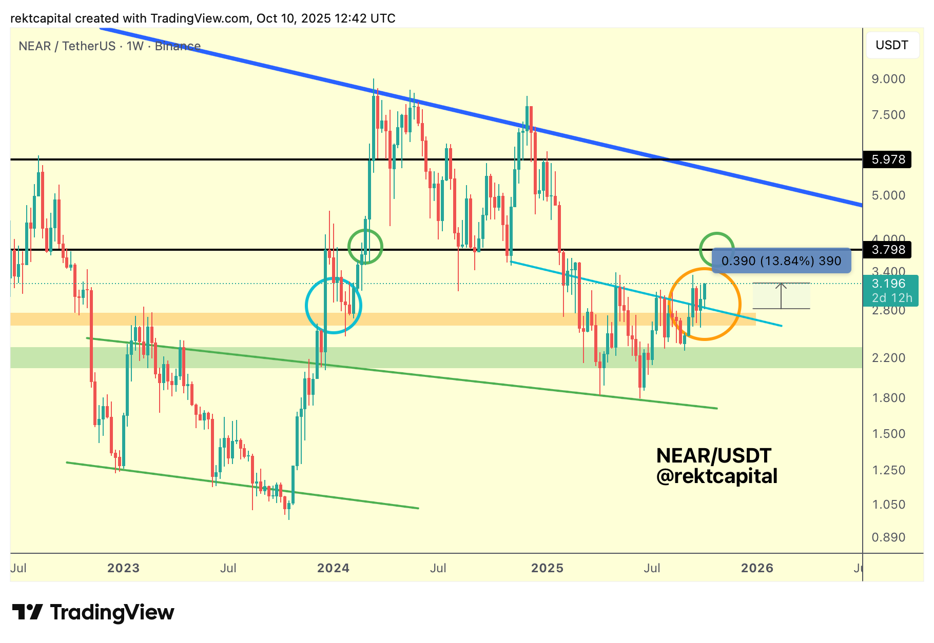 Such a move would also allow NEAR to challenge the Macro Downtrend (dark blue) that has capped upside since early 2024, potentially positioning price for a structural trend shift into a new technical uptrend.