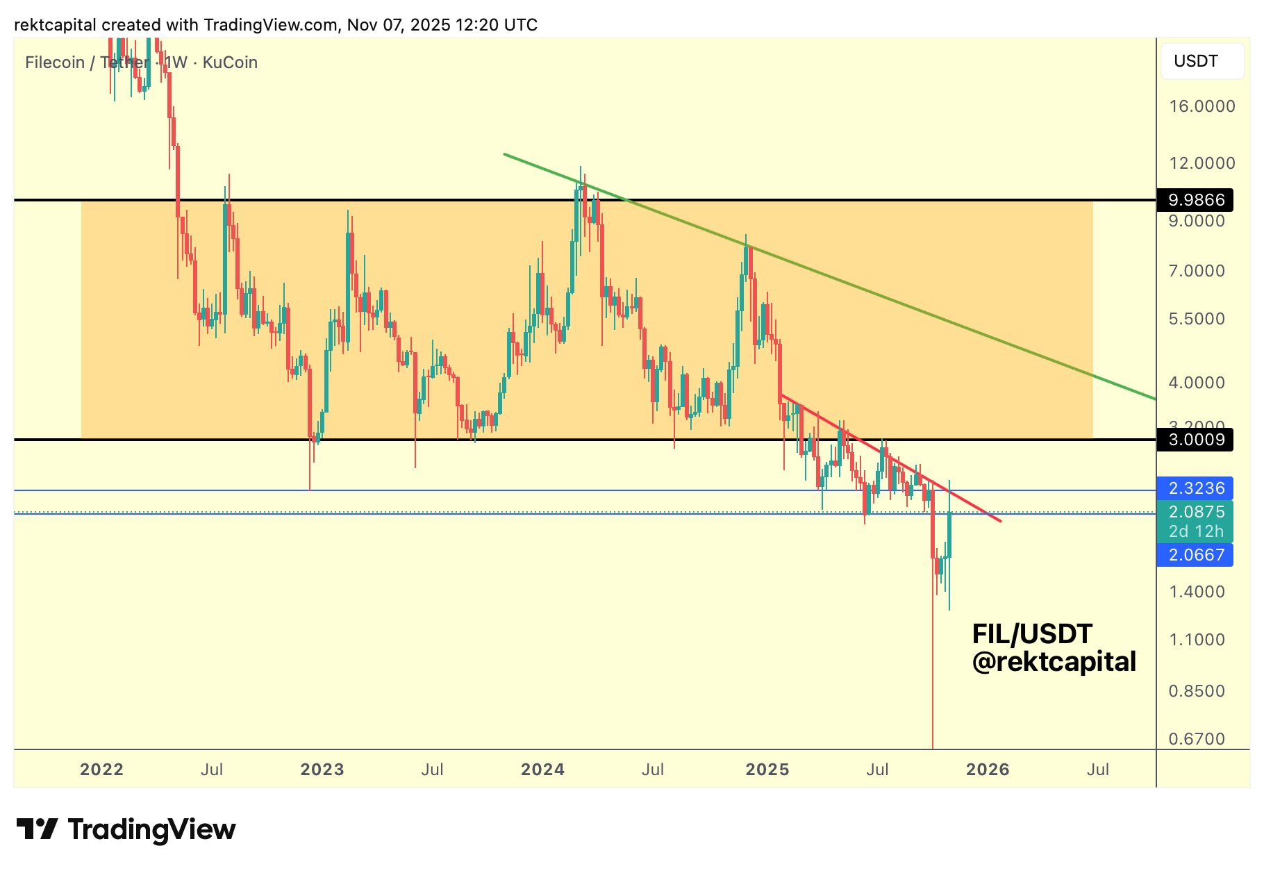 To shift this dynamic, FIL must reclaim $2.06 (blue) and establish a confirmed breakout above the red downtrend.