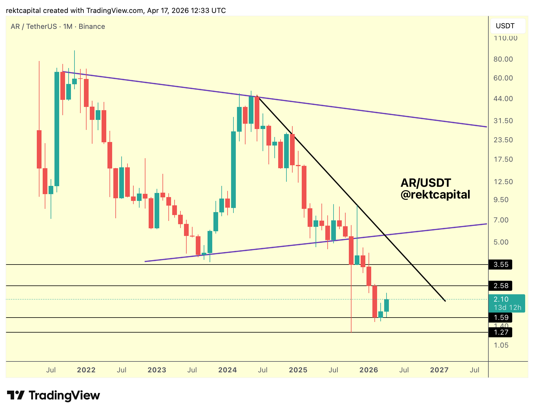 When it comes to Arweave, this purple triangle has completely broken down as a Macro structure, while the black Macro Downtrend continues to act as a point of rejection for multiple years now.