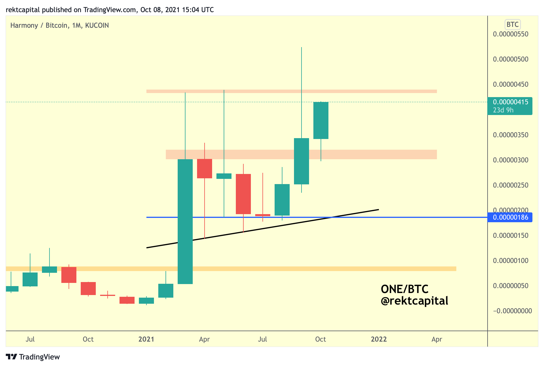 This month, ONE pulled back to that aforementioned resistance, clearly turning it into support.