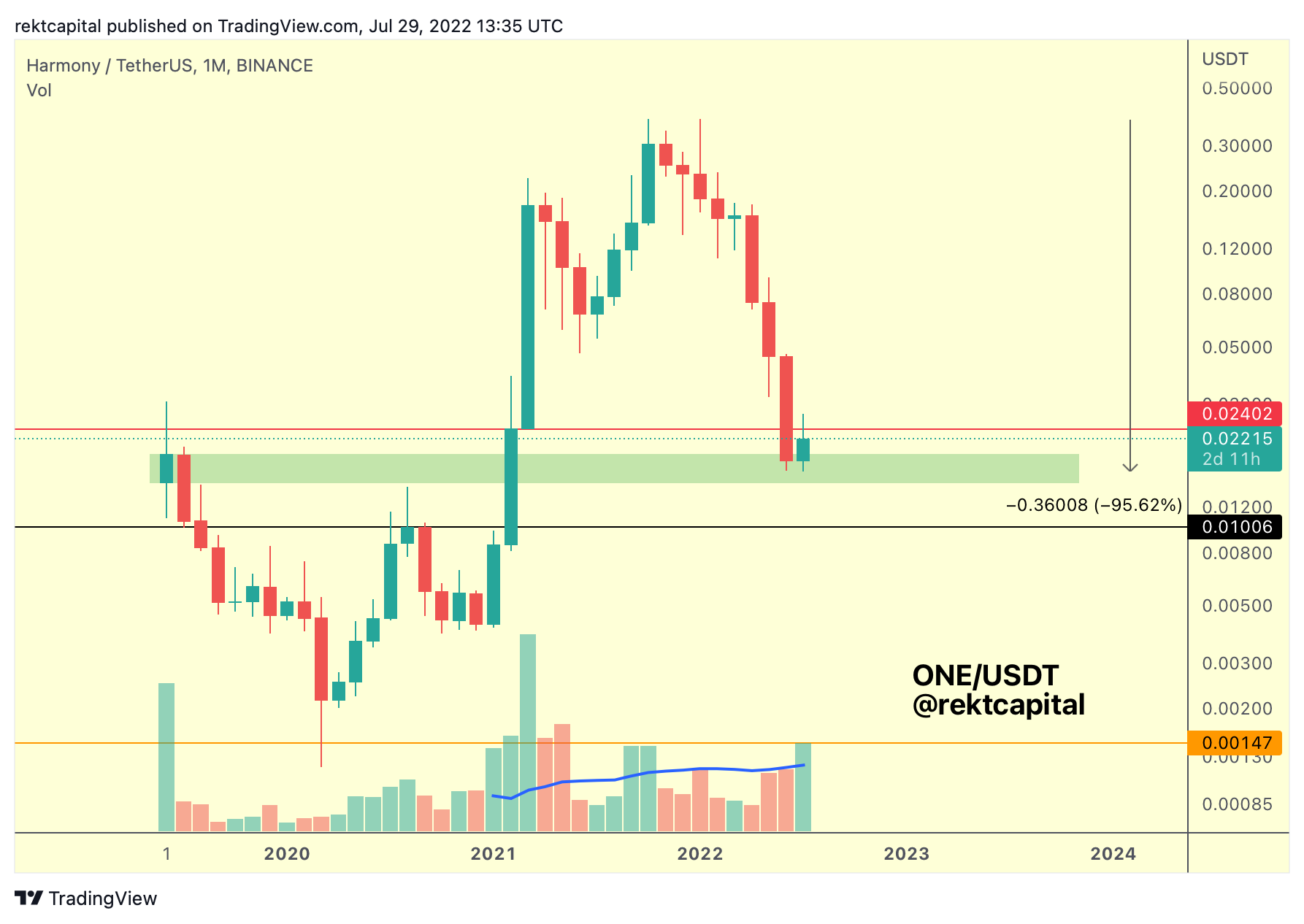 ONE has rebounded from its Binance Listing Price region (green), while rallying striaght into Monthly resistance (red).