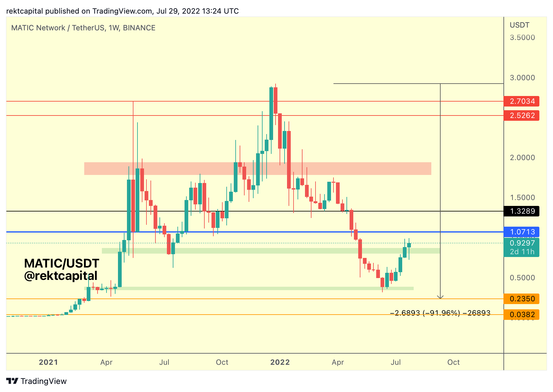 MATIC has successfully retested the green region as support, producing a long downside wick in the process, just like before in mid-2021 and April 2021 as well.