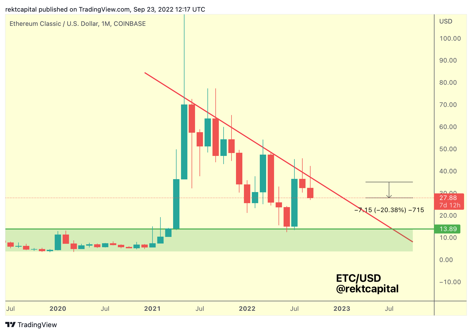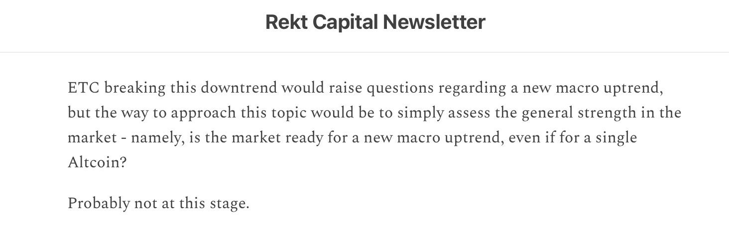 ETC indeed rejected from the Macro Downtrend and is now down -20% since then.