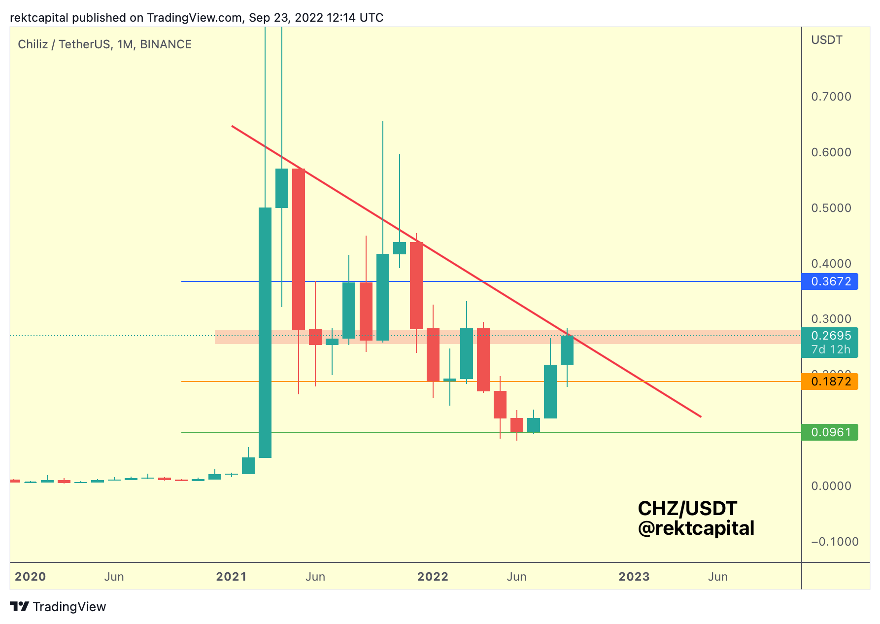 Of course, break the macro downtrend and a new macro uptrend will begin, with CHZ likely to revisit the blue resistance above.