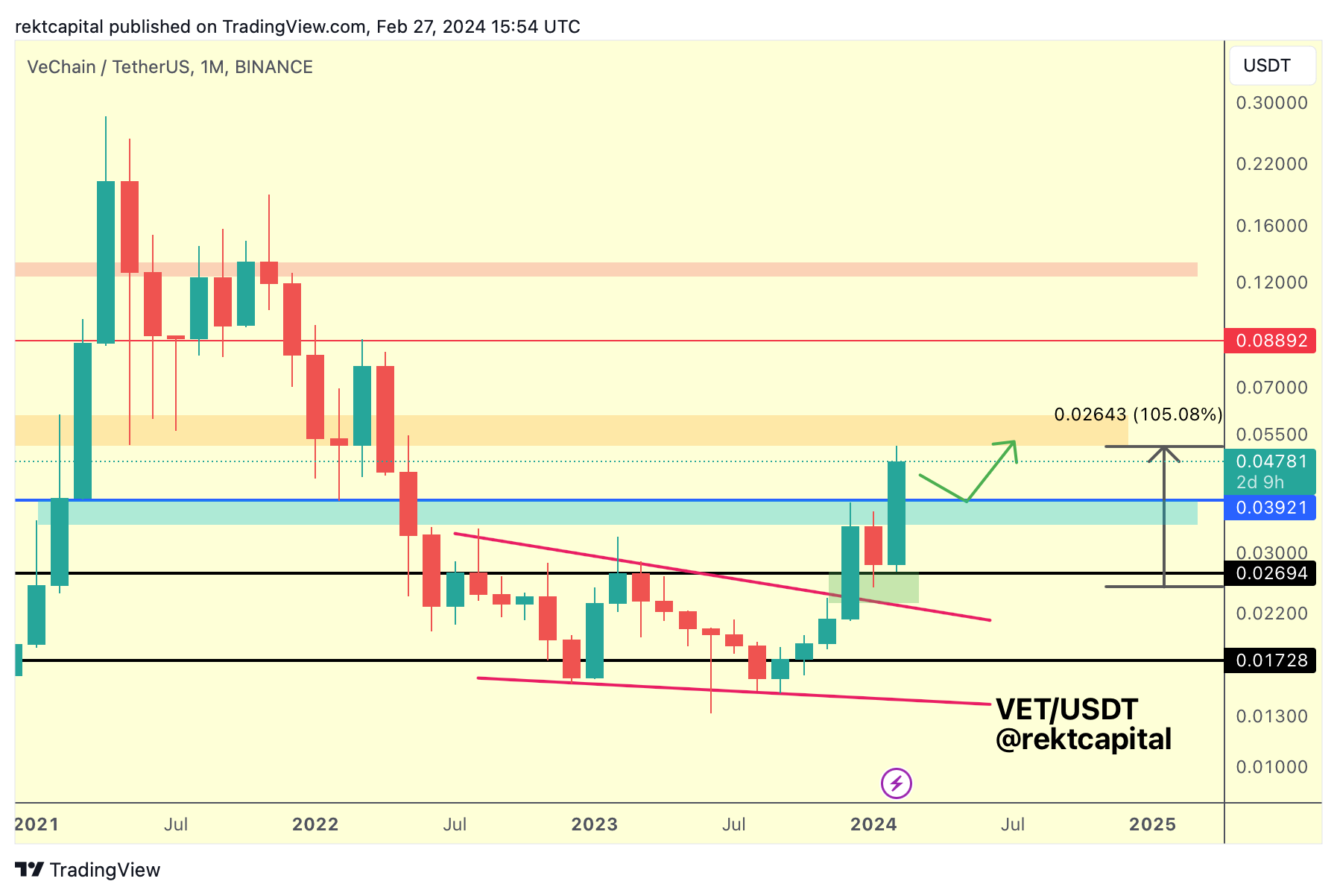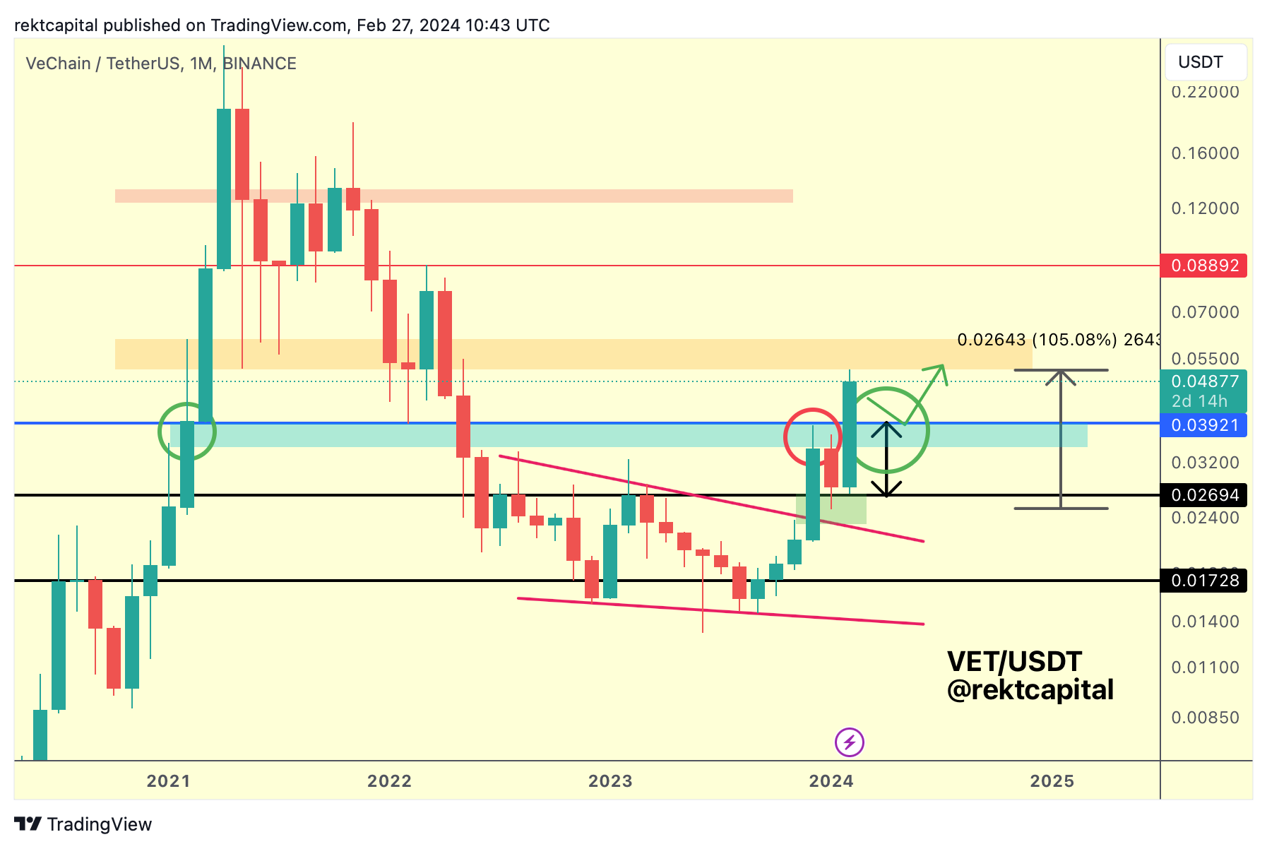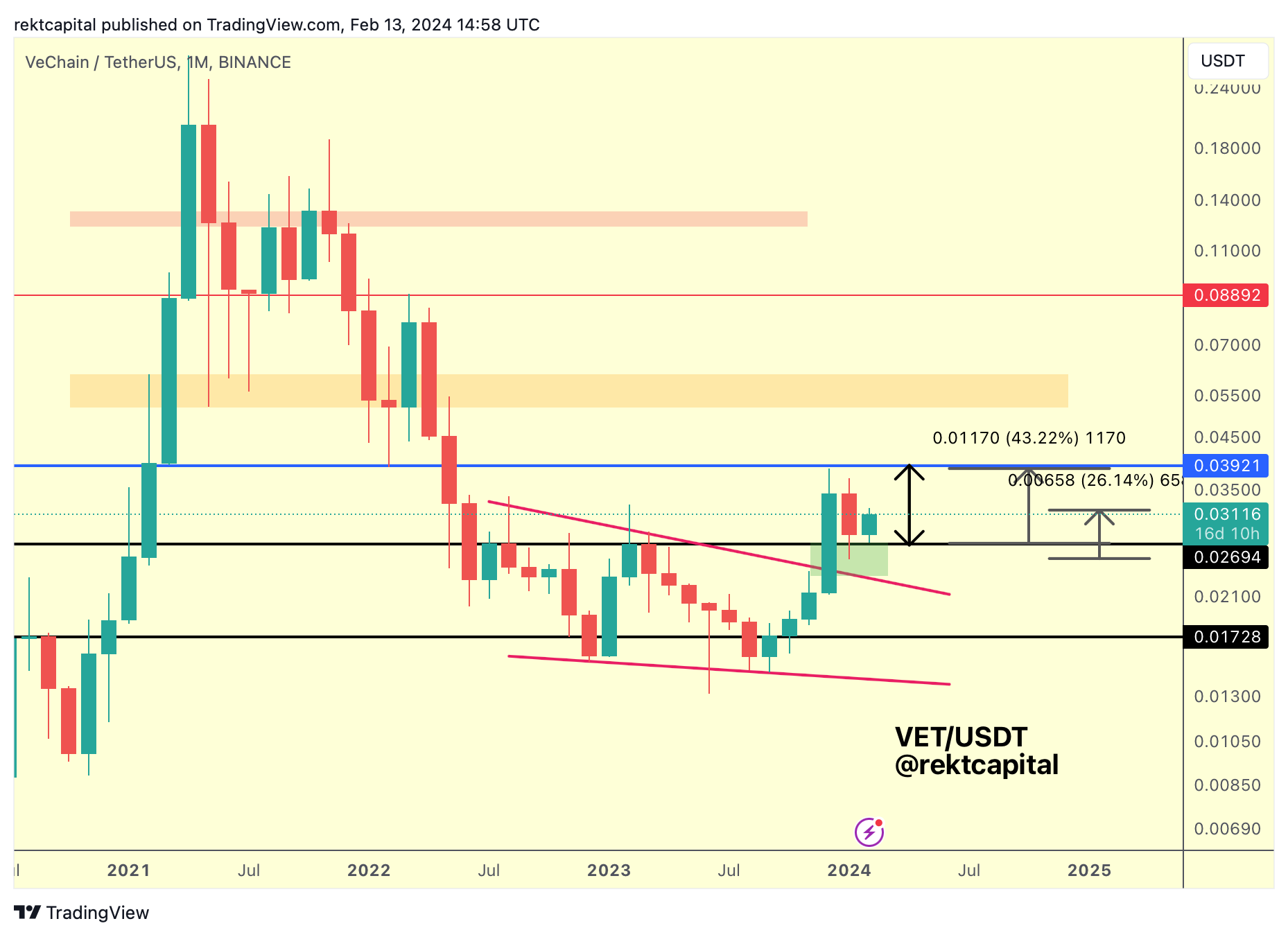 In retesting this Range High, VET not only confirmed further upside towards the next immediate resistance area (orange box) but positioned itself for a very positive Monthly Close as well: