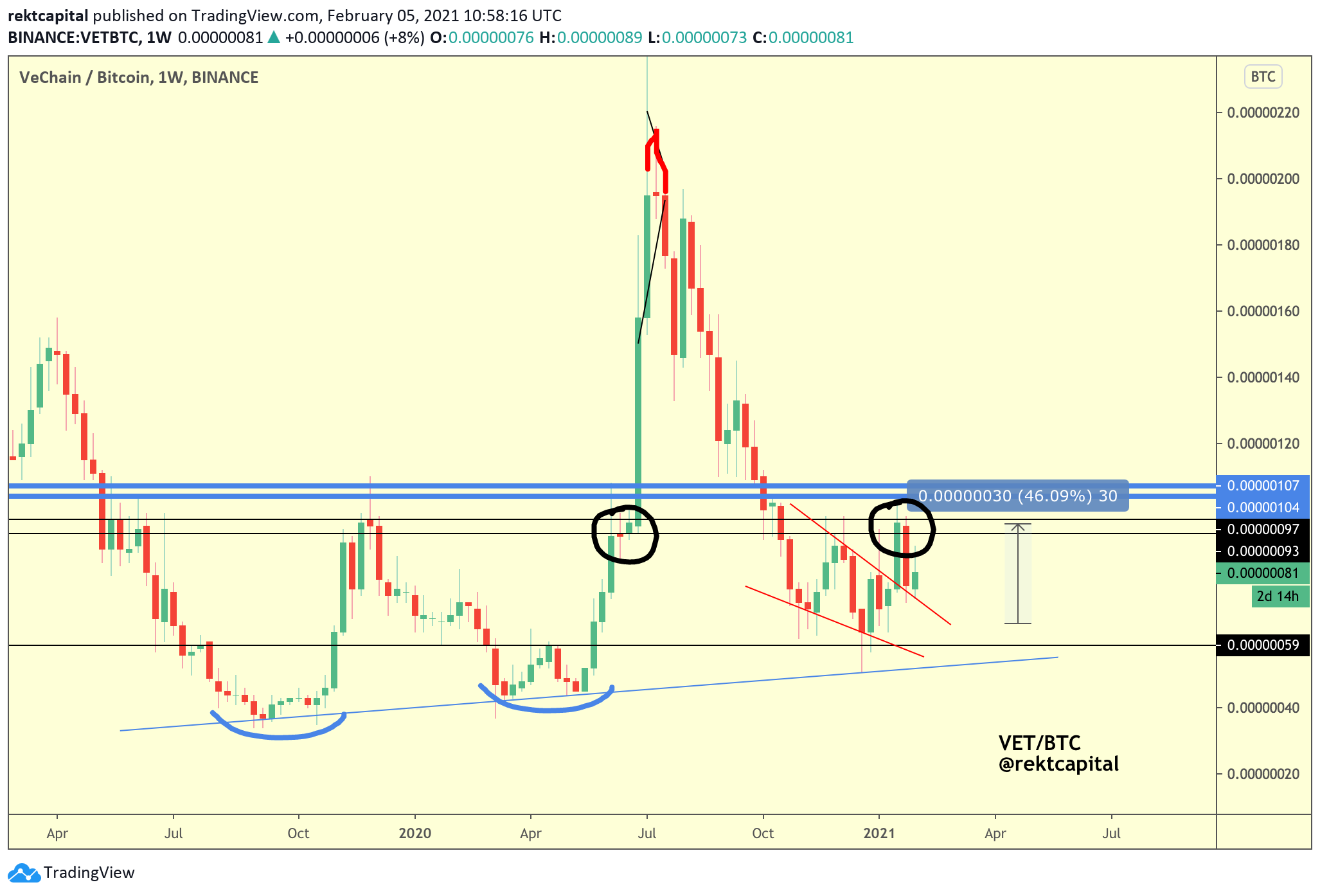 In fact, VET pulled back to successfully retest the Falling Wedge…