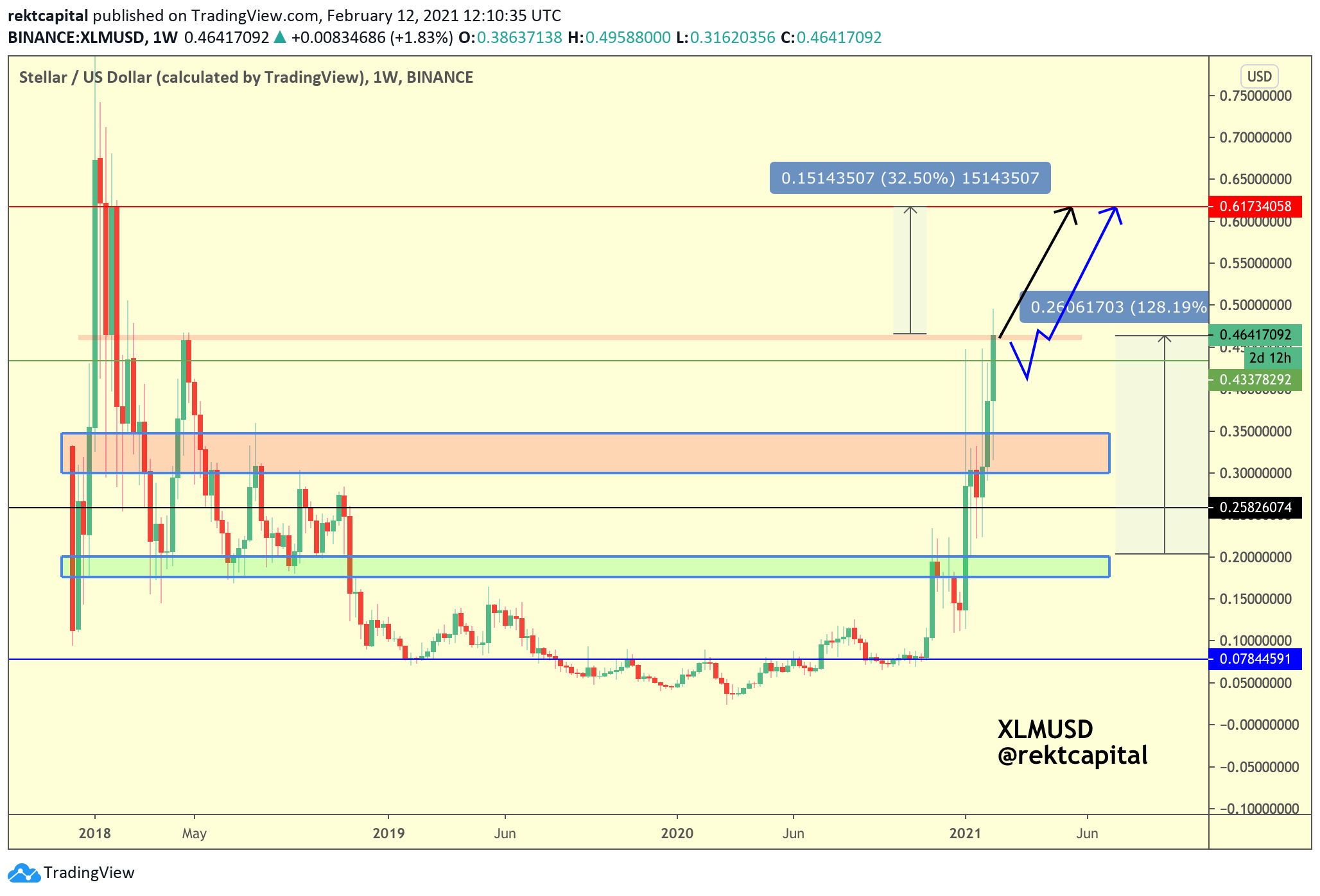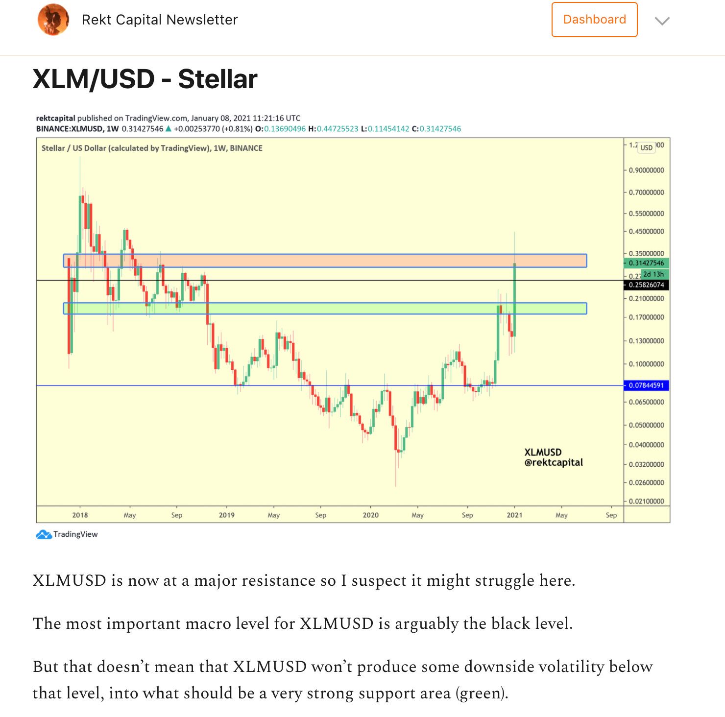 But if XLM needs to dip first before turning red into support, it would take the blue pathway instead.