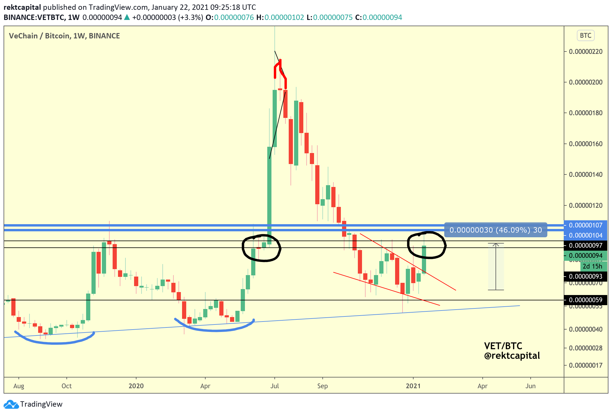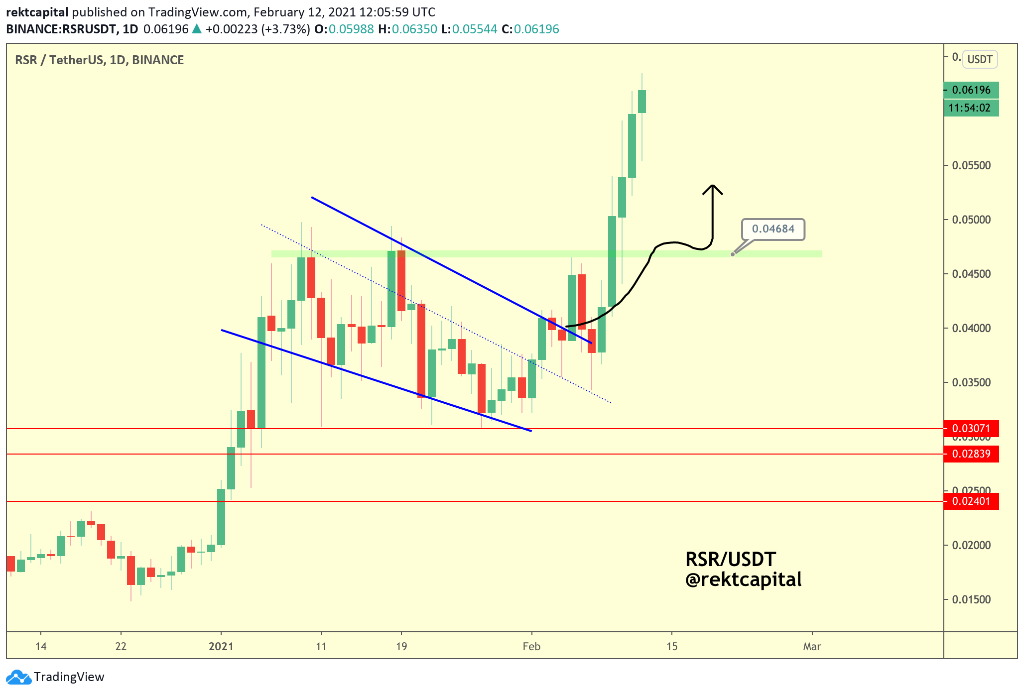Speaking of Falling Wedge breakouts - RSR enjoyed a retest of its previous breakout pattern just like VET/BTC: