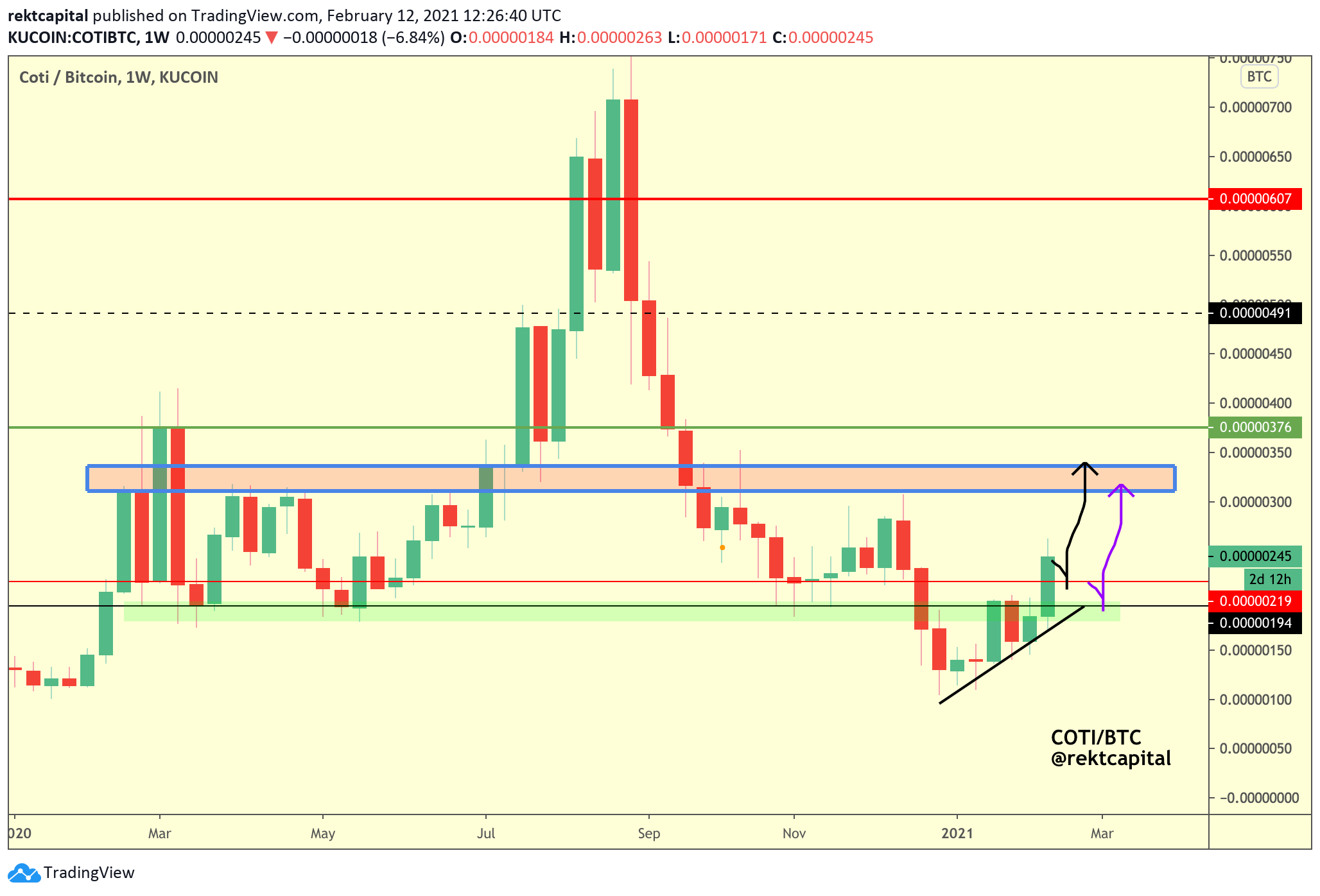The most important thing however is that COTI maintains itself above the local red level on the Weekly.