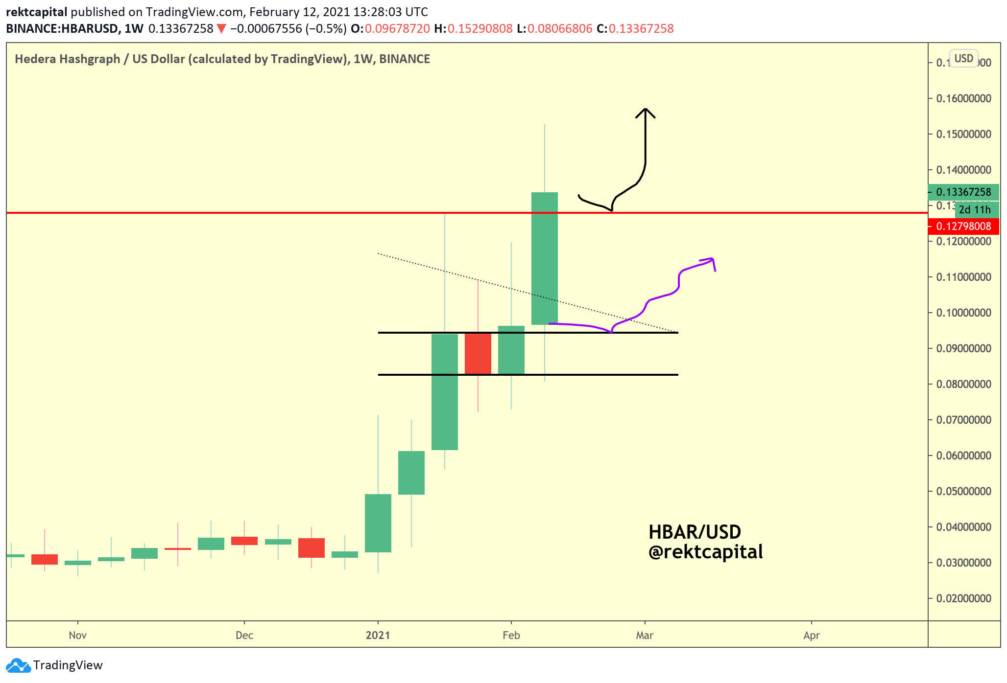 HBAR lately broke out from a Weekly Bull Flag to reach a new All Time High: