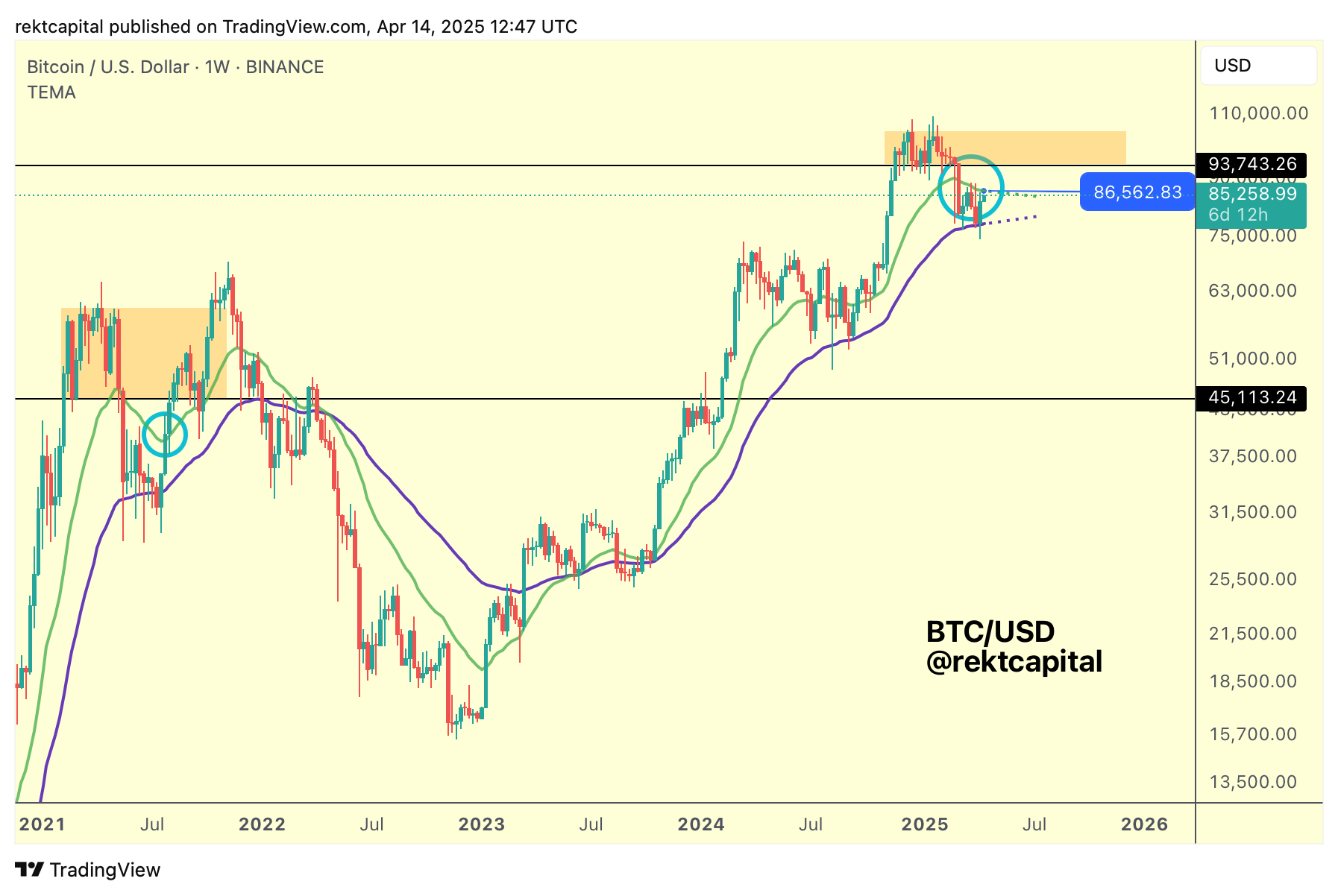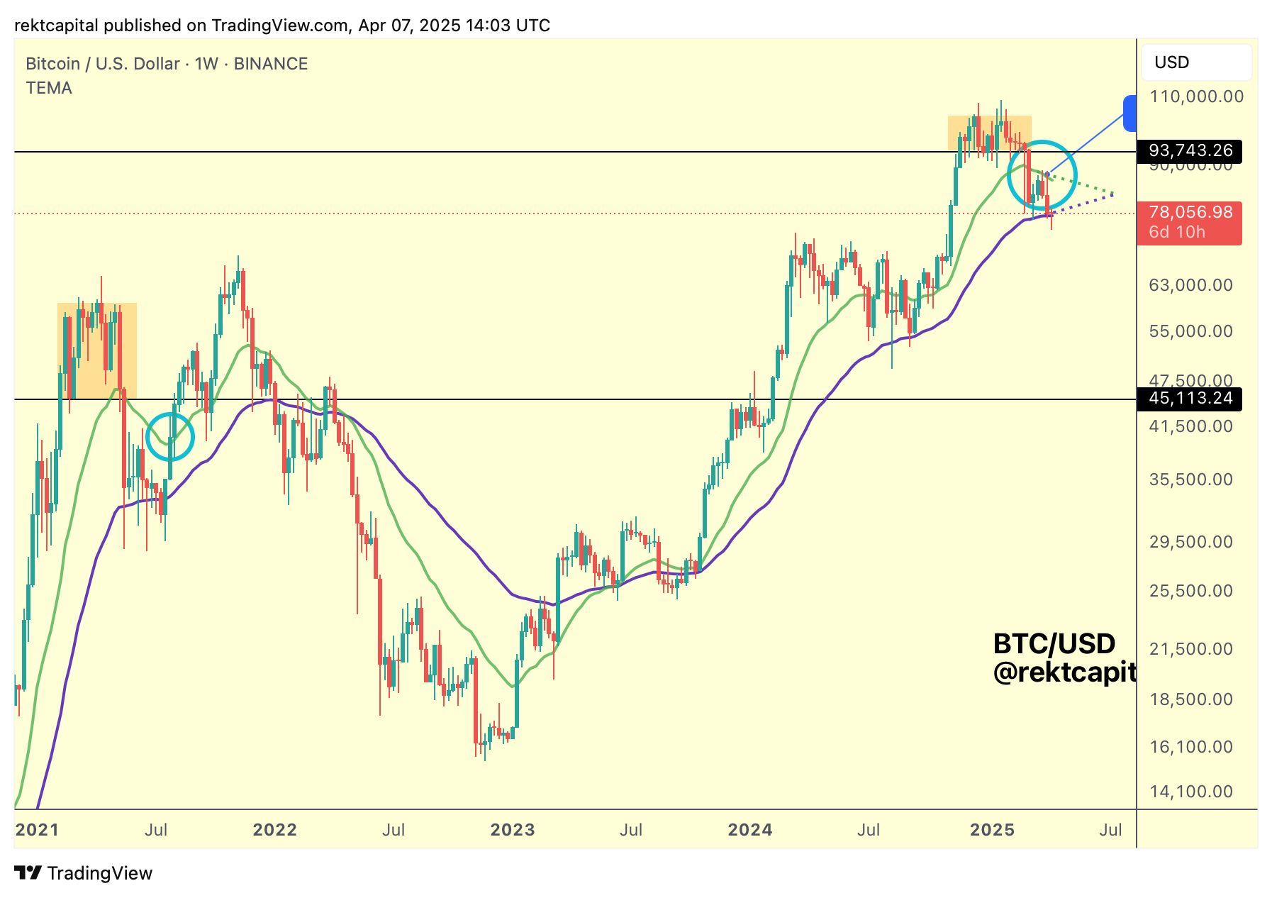 Earlier this April, BTC was holding the purple 50-week EMA as support.