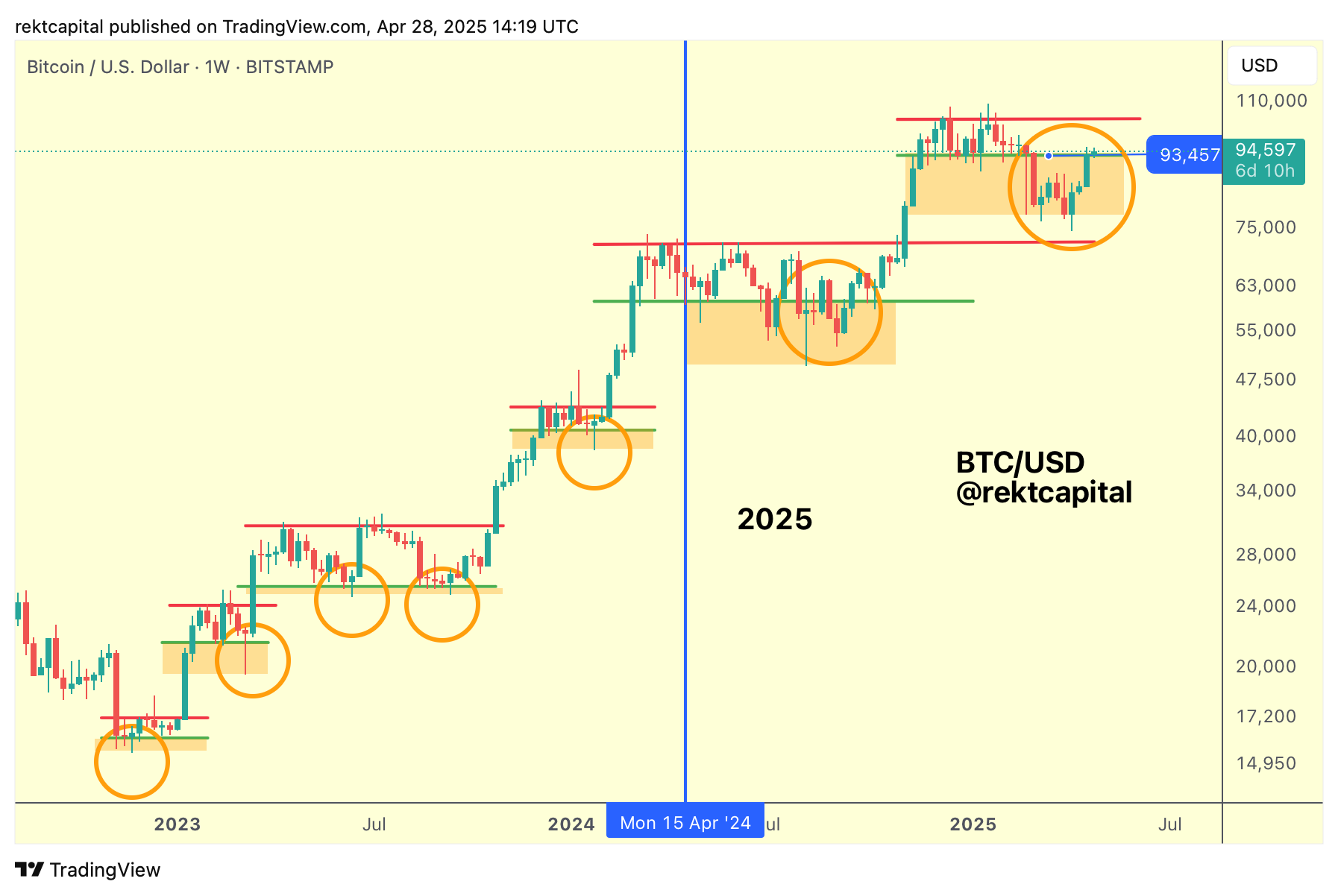Of course, the best-case scenario would be that Bitcoin successfully retests $93500 as support and rallies across the range to fully resynchronise with this range.