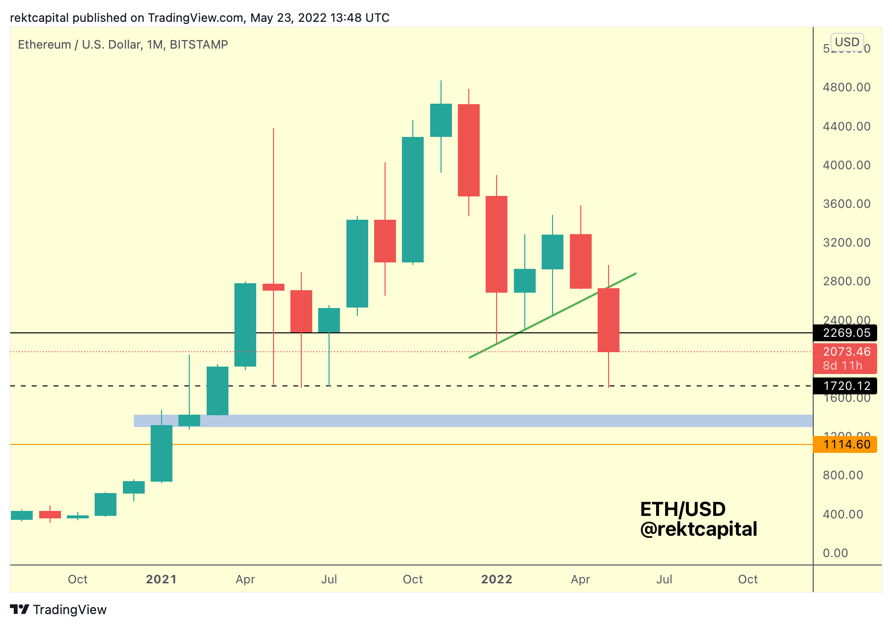 A Monthly Close for ETH below ~2269 would show that ~$1720 isn’t generating the same reaction as it did in mid-2021 and that ~$2269 could indeed be turning into resistance on the next test of it.