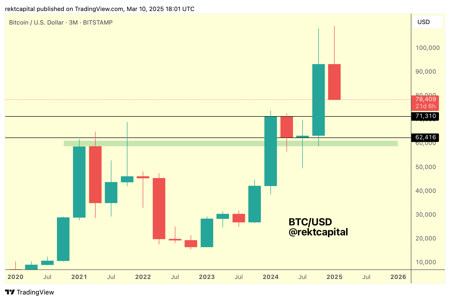 Bitcoin has been retracing all quarter long and has no major support on the Quarterly until the $71310 level (black), which represents the Post-Halving Re-Accumulation Range of ~$60k to $70k.