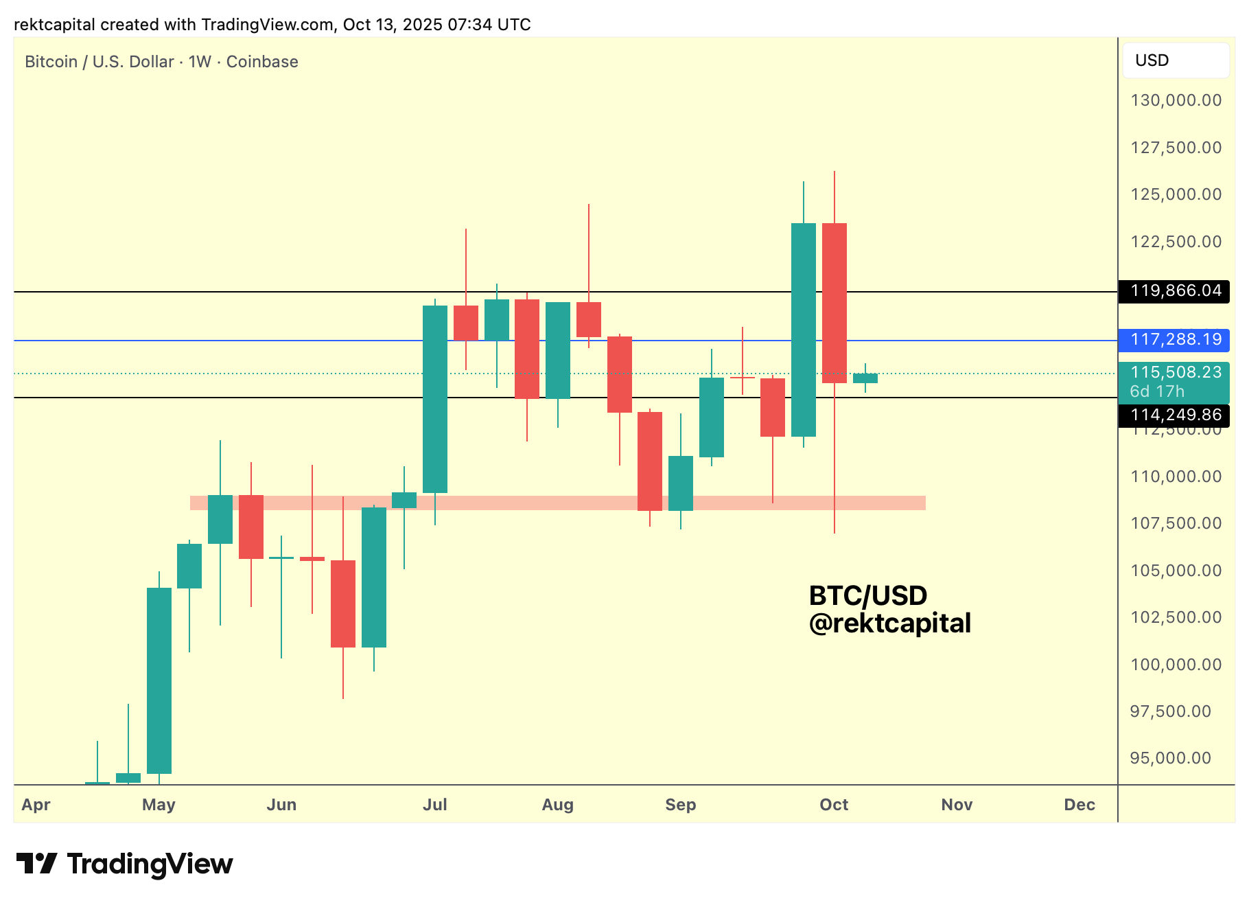 Macro-wise, Bitcoin is simply consolidating inside its $108k-$116k Monthly Range, upside wicking beyond the Range High and downside wicking below the Range Low.