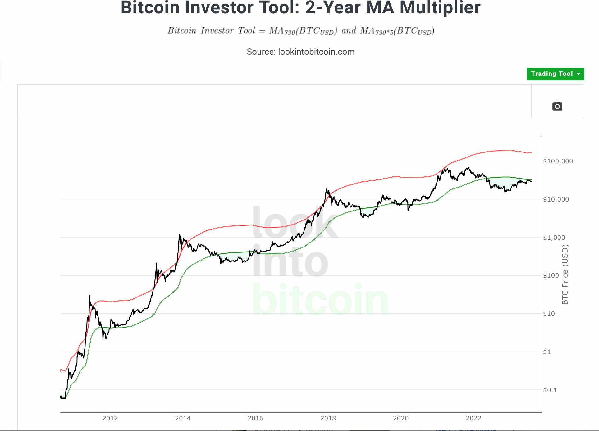 Historically, any consolidation below the green 2-year MA has preceded fantastic ROI for long-term BTC investors.