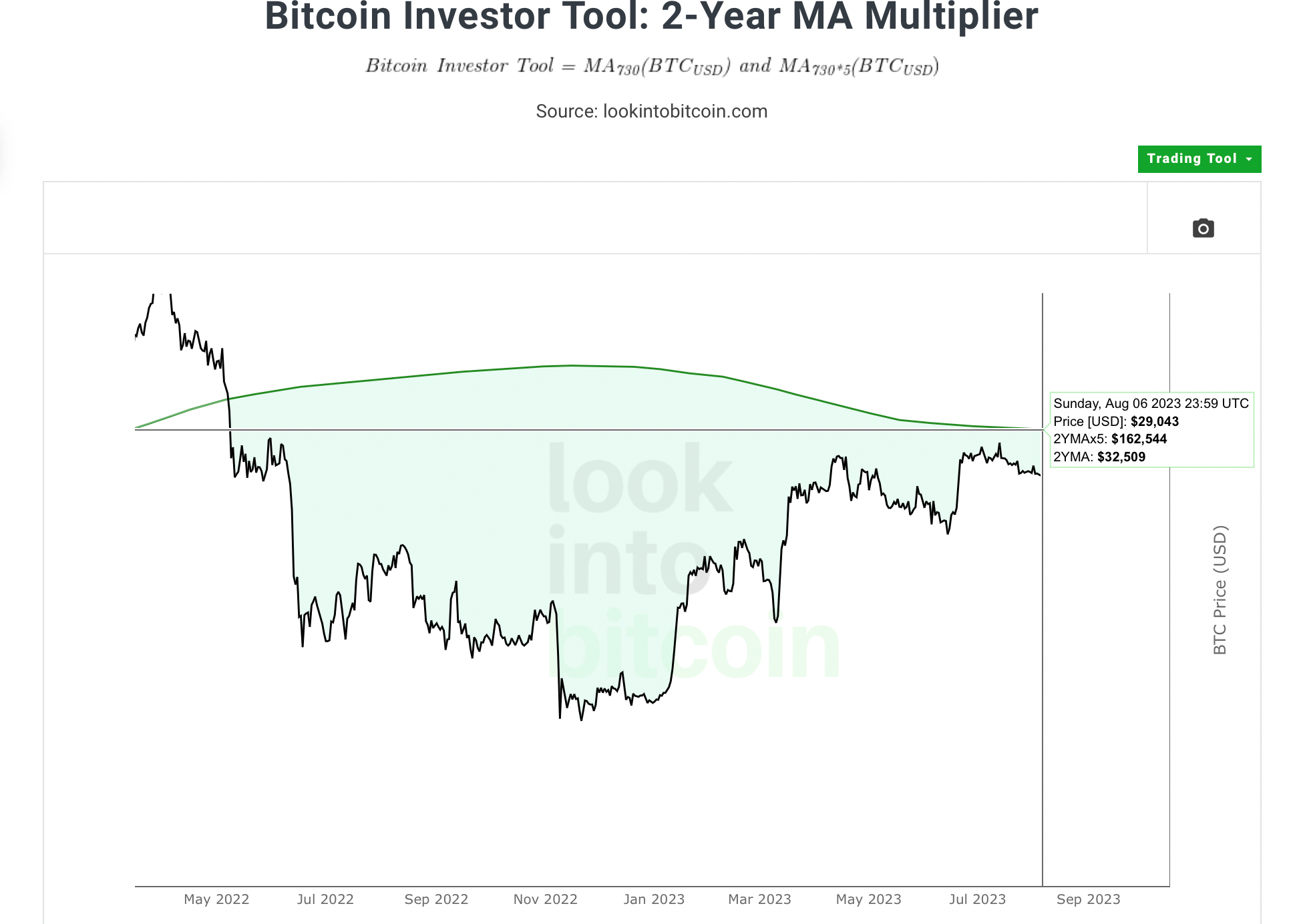 The 2YMA represents the price point of ~$32500 and the recent BTC highs have occurred slightly below that price point.