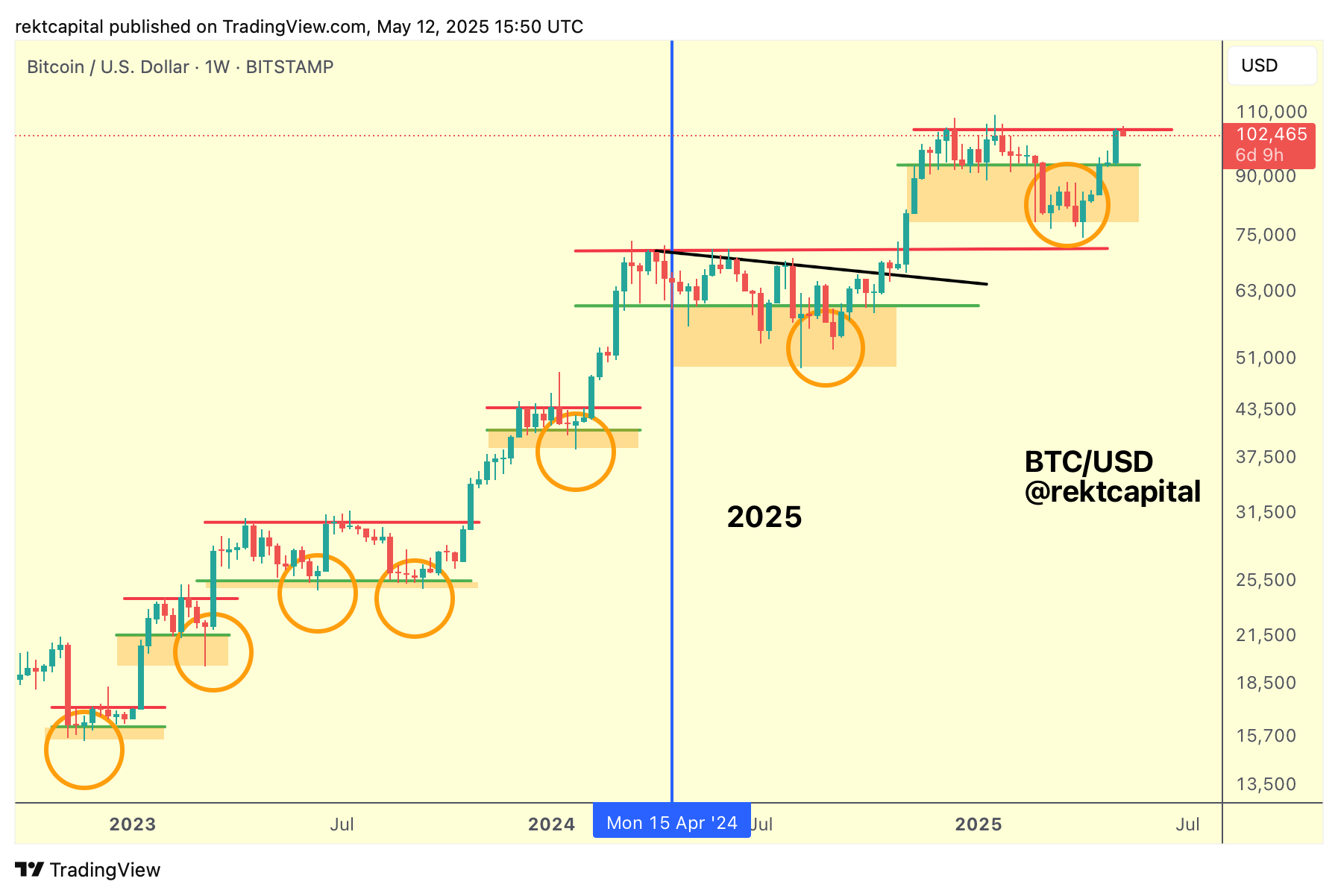 Let's take a look at Bitcoin's Post-Halving Re-Accumulation Range: