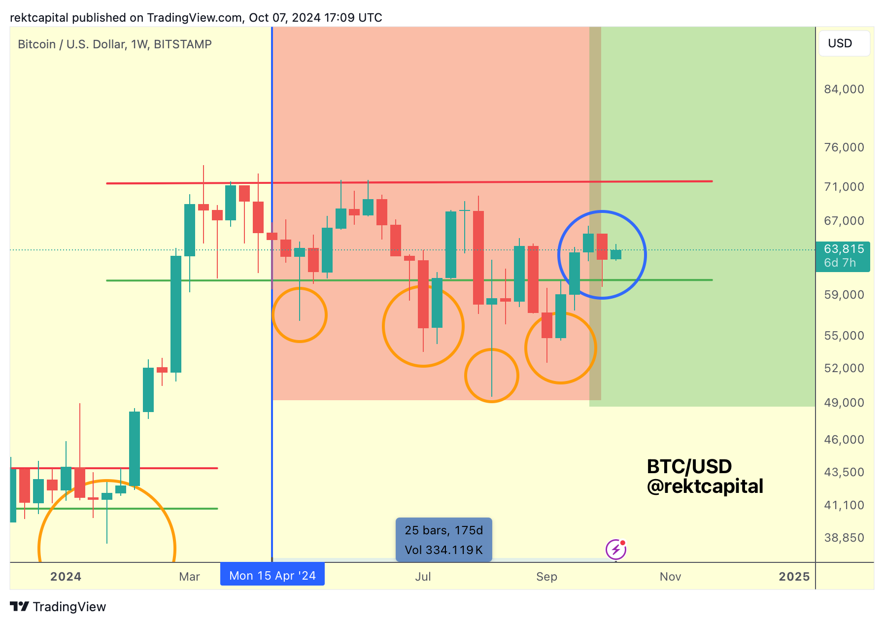 In terms of the Weekly ReAccumulation Range, Bitcoin has managed to successfully retest the Range Low at $60600 (green) after having broken beyond it a few weeks prior: