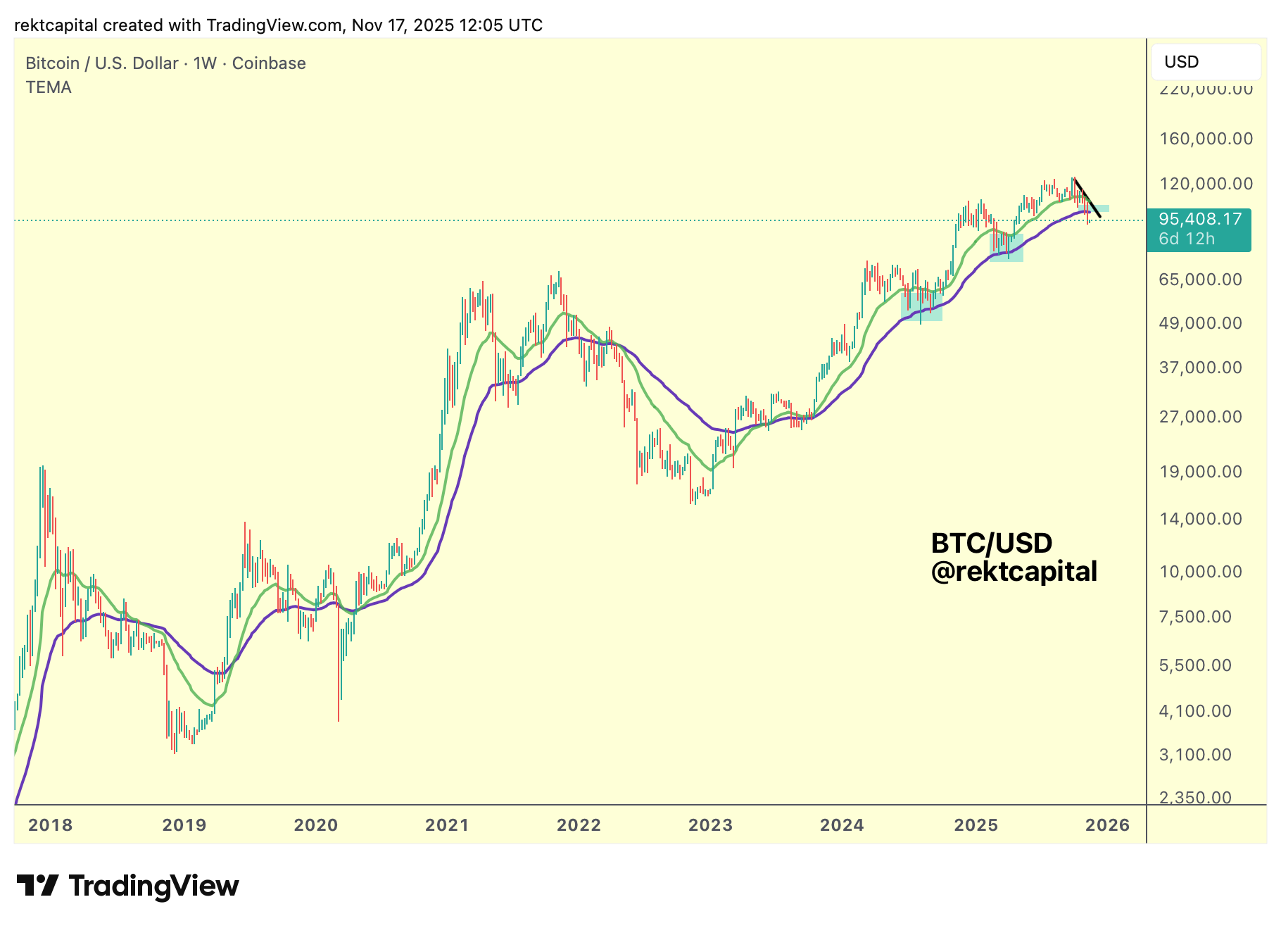 Of course, the absolute best case would still be that Bitcoin remains in a bull market, but if we are instead transitioning, these early signs: Weekly Close below the EMA, relief rallies failing at the underside, and the beginning of trend weakening would be consistent with how prior early bear phases have formed.