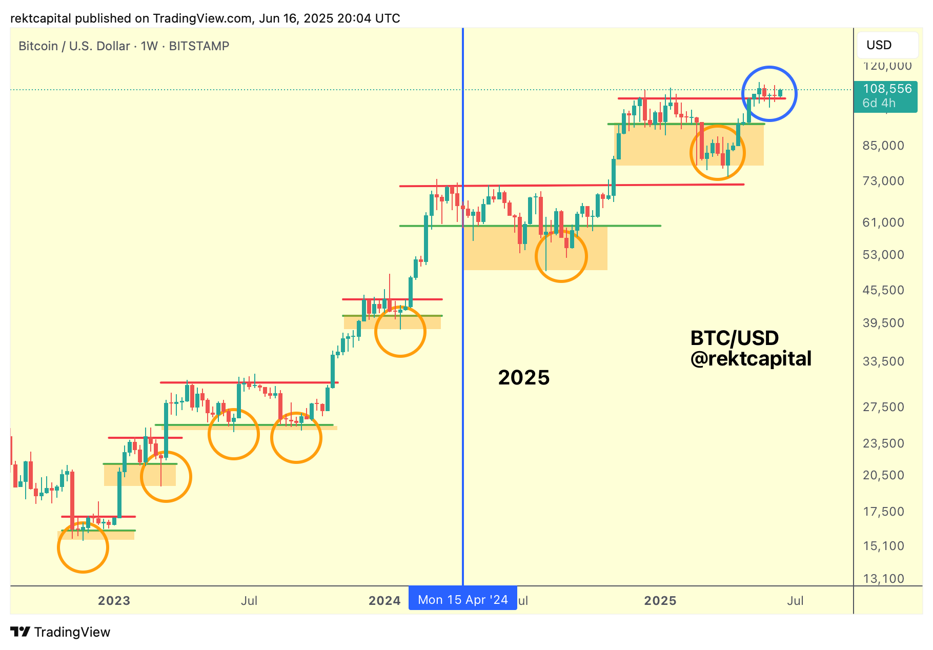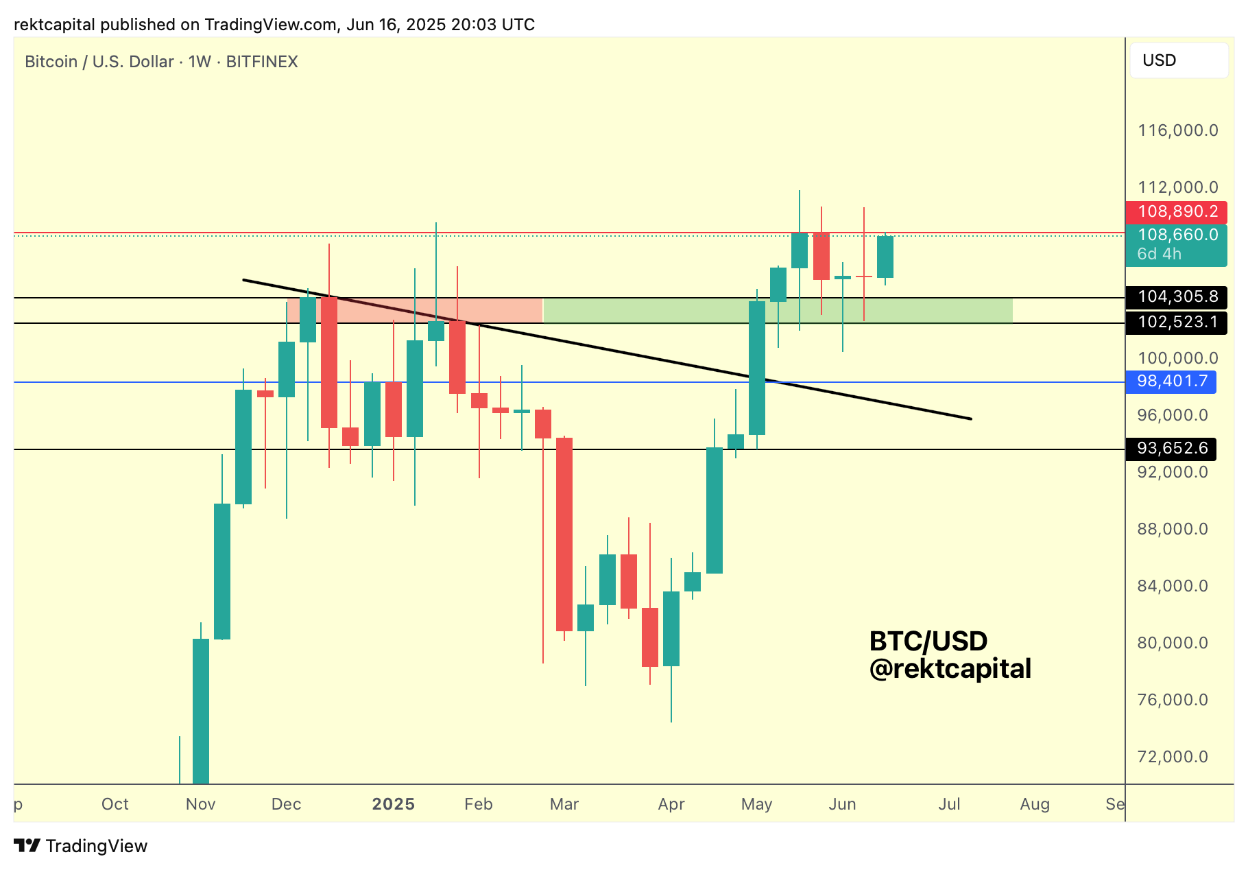 And if we further build out this view, then the green area is a support and the final major resistance of $108890 (red) is the Range High resistance.