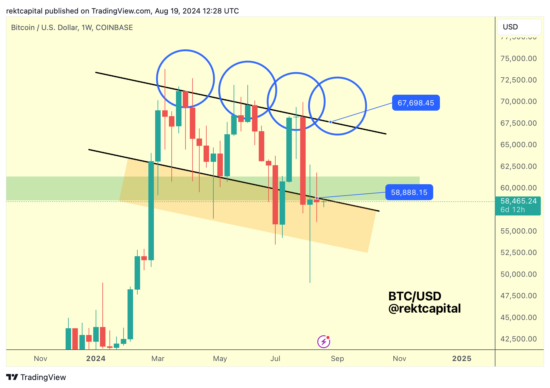 Last week, Bitcoin needed to perform a Weekly Close above $58888 to secure this reclaim but price failed to do so.