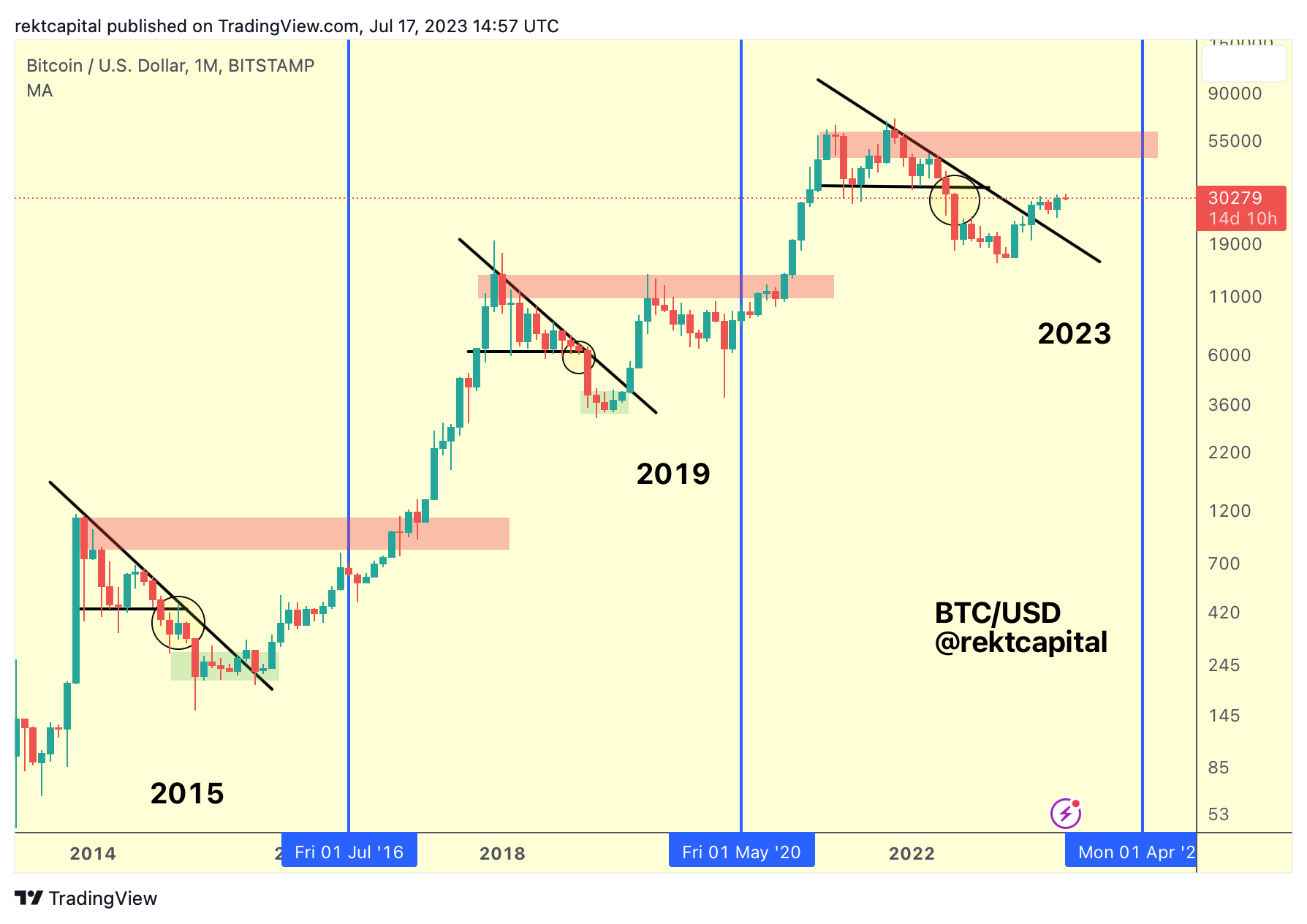 And once the following Bear Market concludes, Bitcoin's price finally reverses, over time Bitcoin is able to break beyond this same region of resistance, and by breaking it BTC rallies to new All Time Highs.