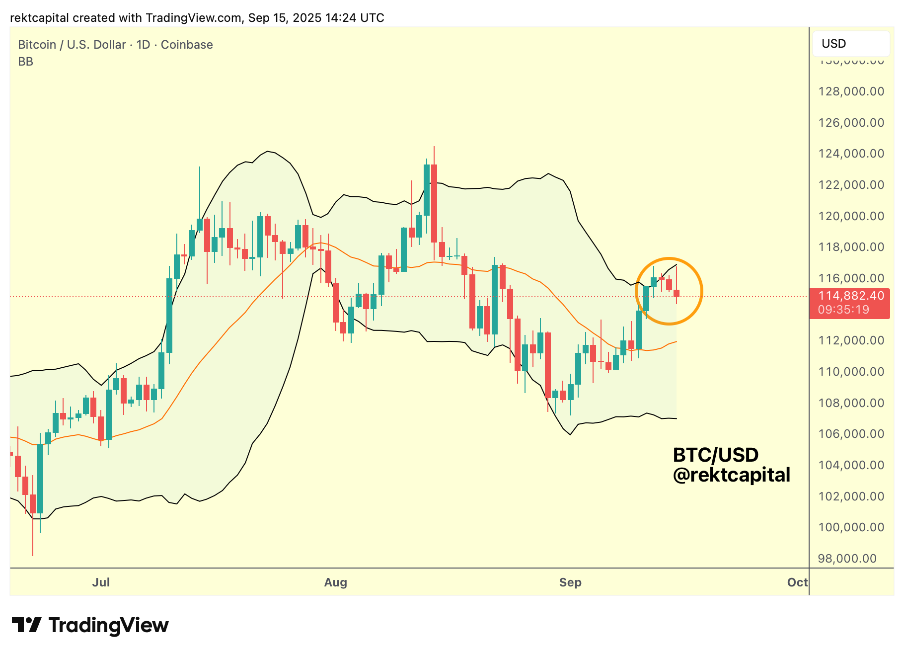 And indeed, Bitcoin broke out all the way to the very top of the Upper BBand: