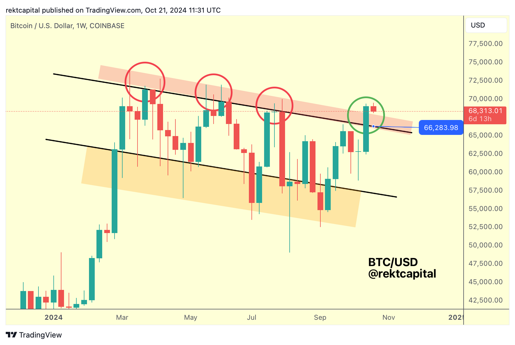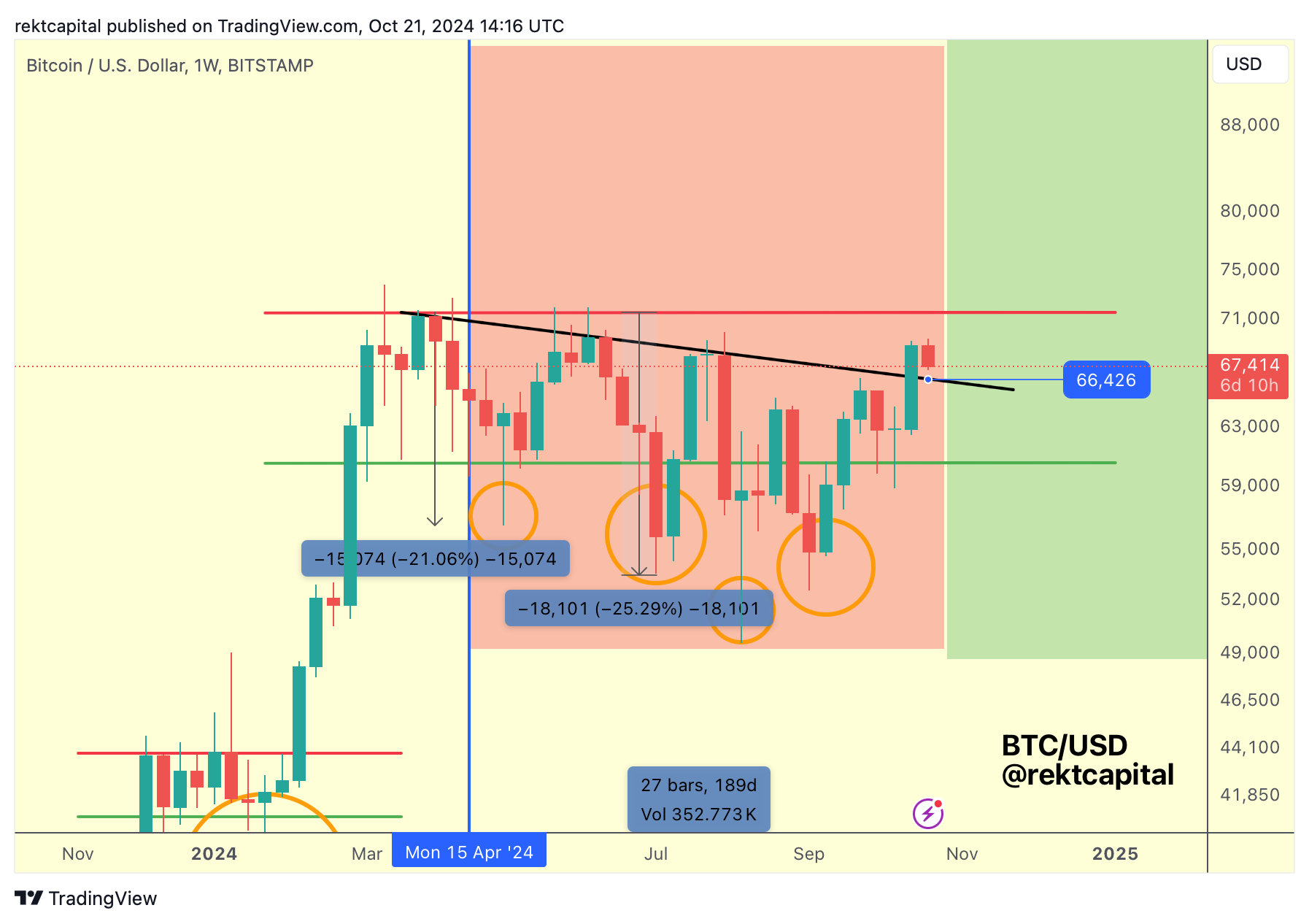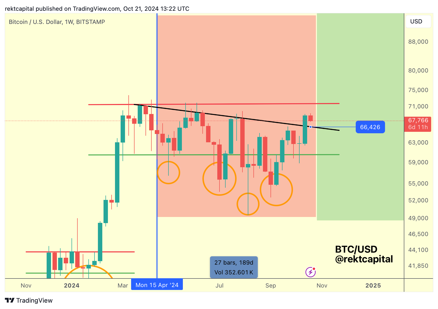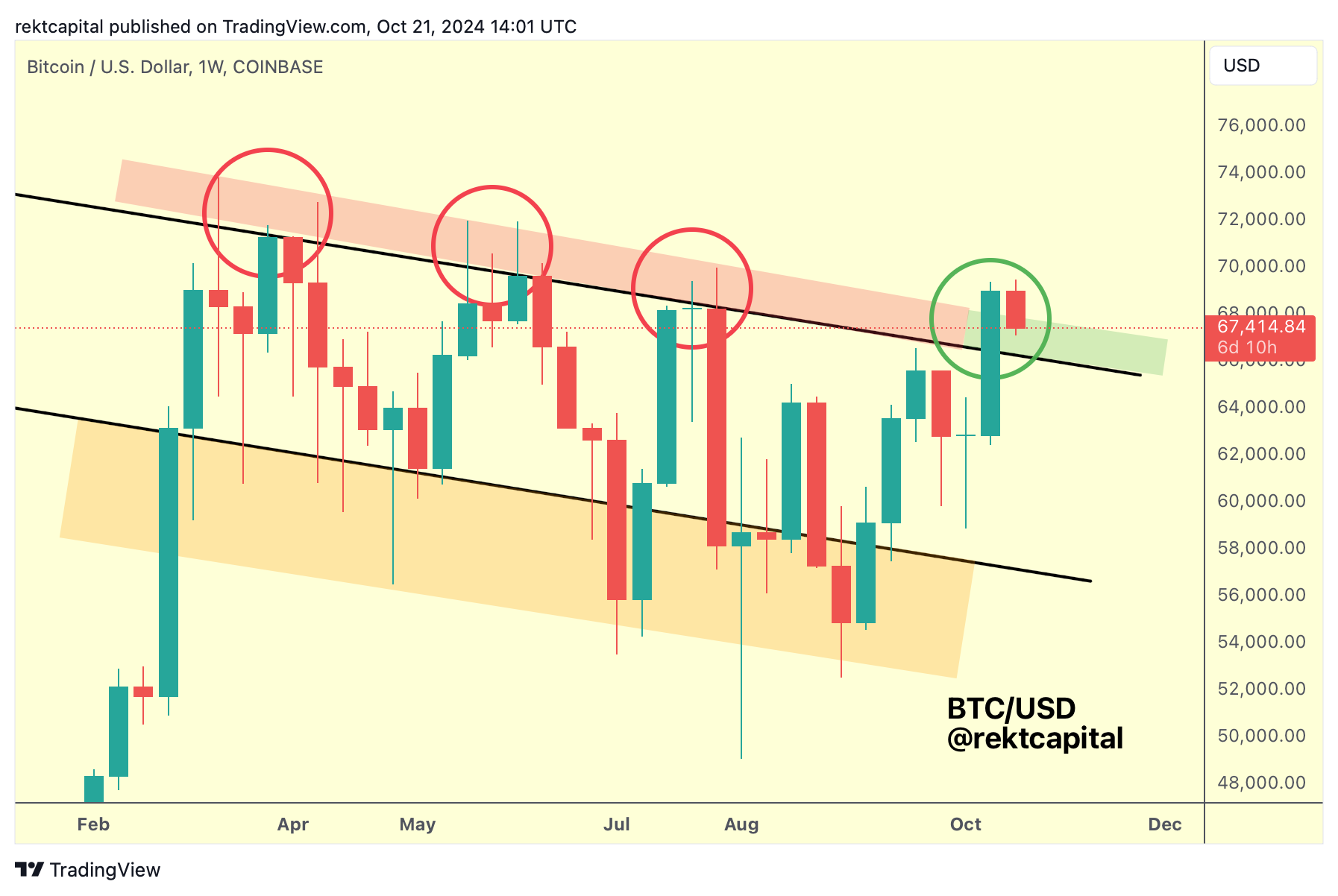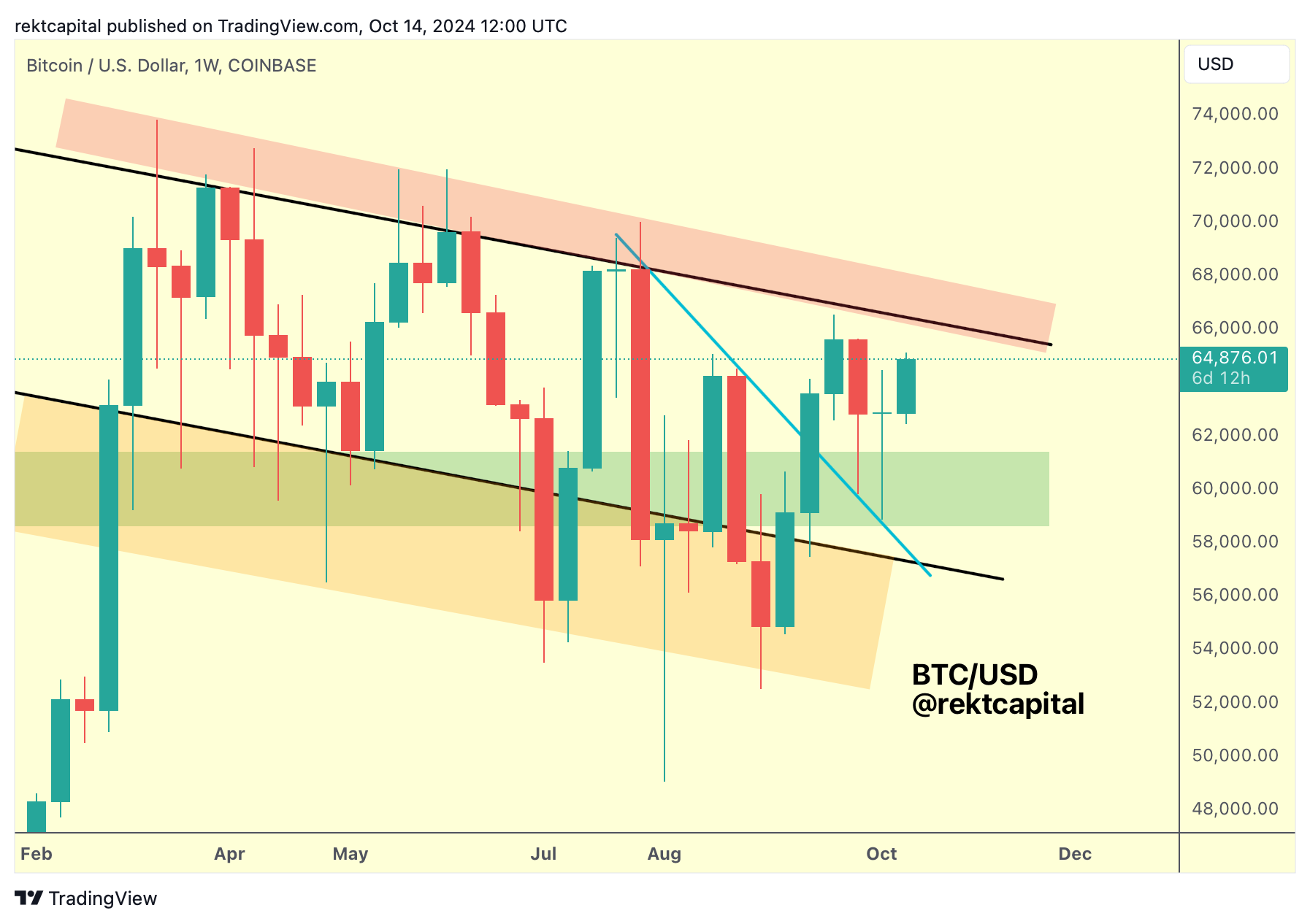 Successful retest would see price revisit the Range High at ~$71500 (red) in the future for what would be Bitcoin first challenge of the top of the ReAccumulation Range since June.
