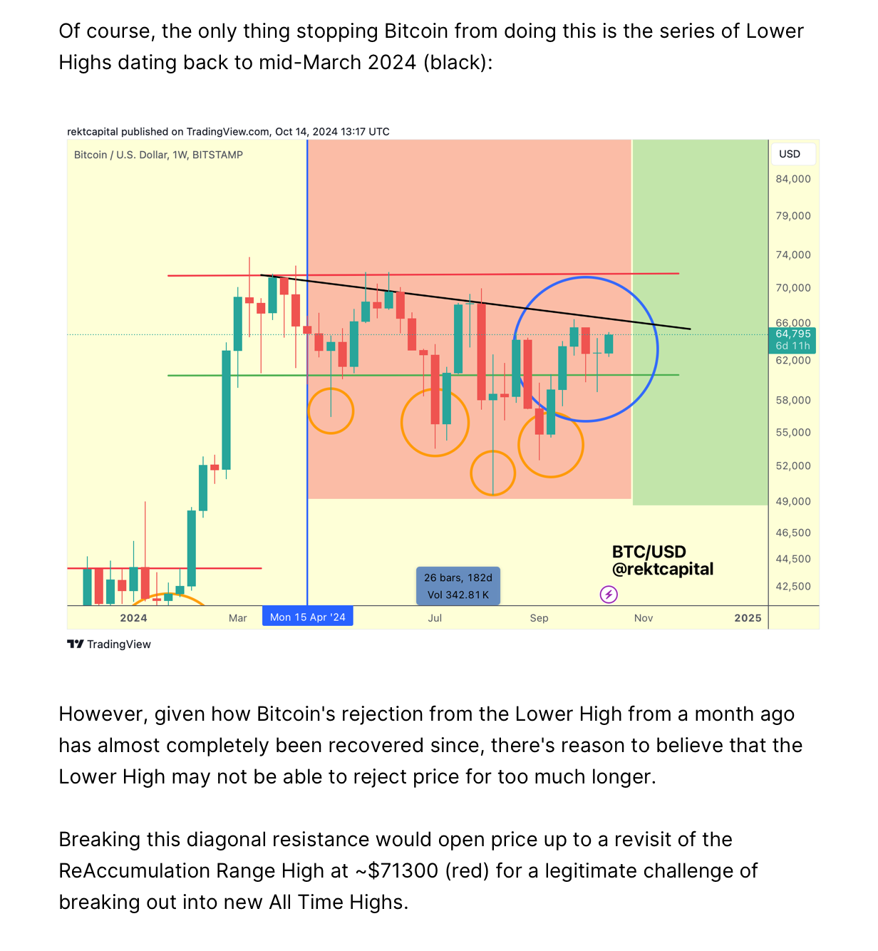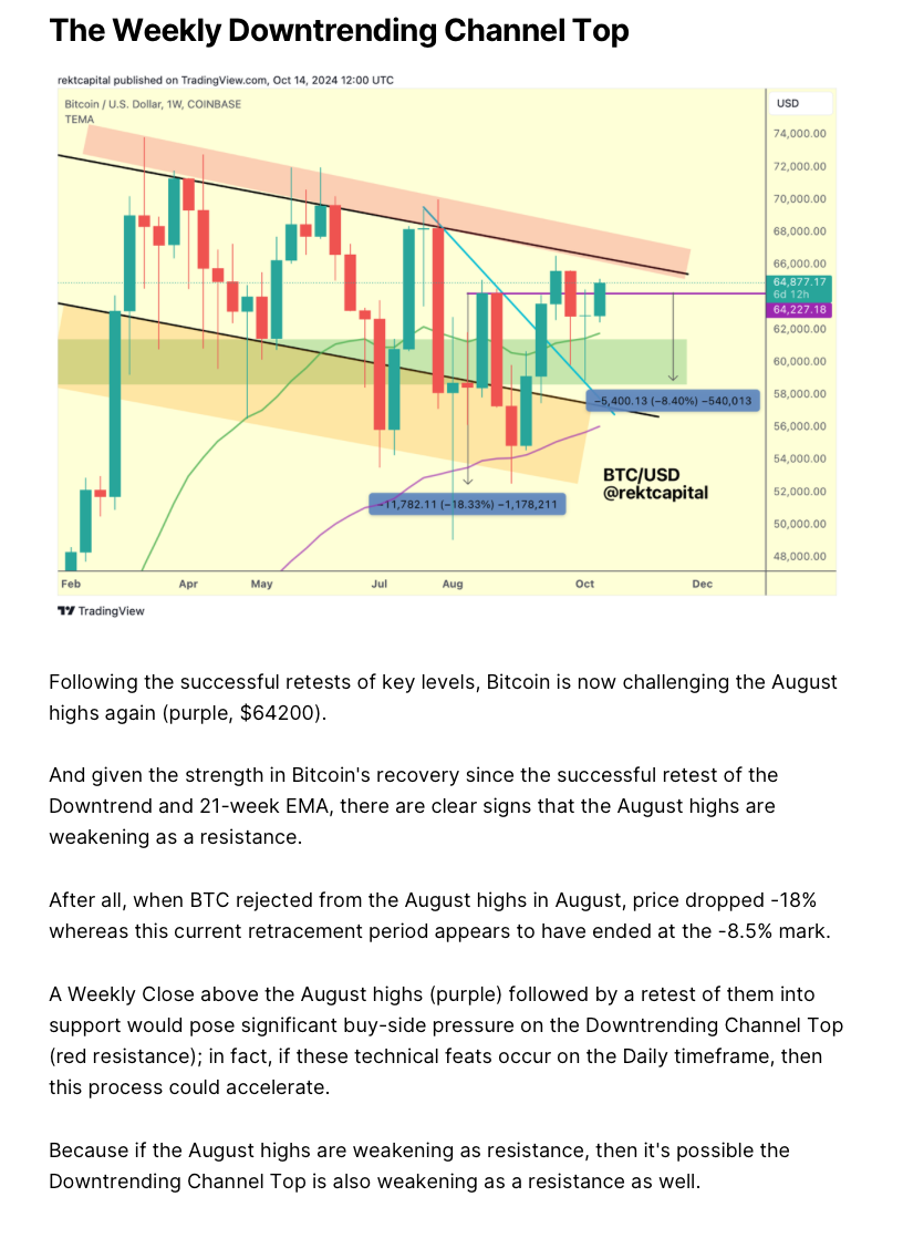 In breaking out from this Channel, Bitcoin has therefore invalided the series of Lower Highs (black) dating back to mid-March 2024.