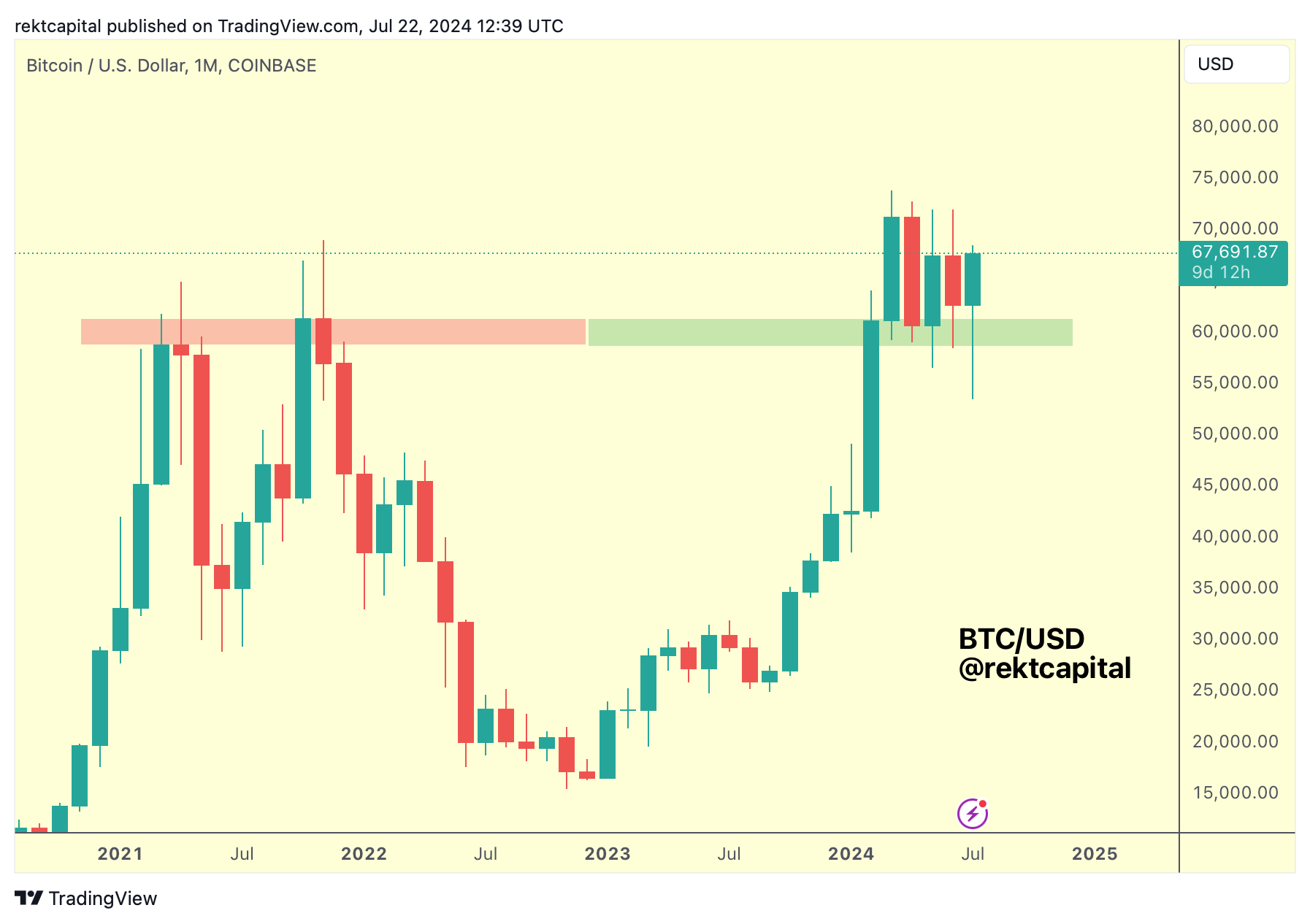 What's more, Bitcoin has successfully managed to form a new Higher Low against this green area, evidencing premium-buying behaviour at the green support (even though brief downside wicks below the area occurred also).