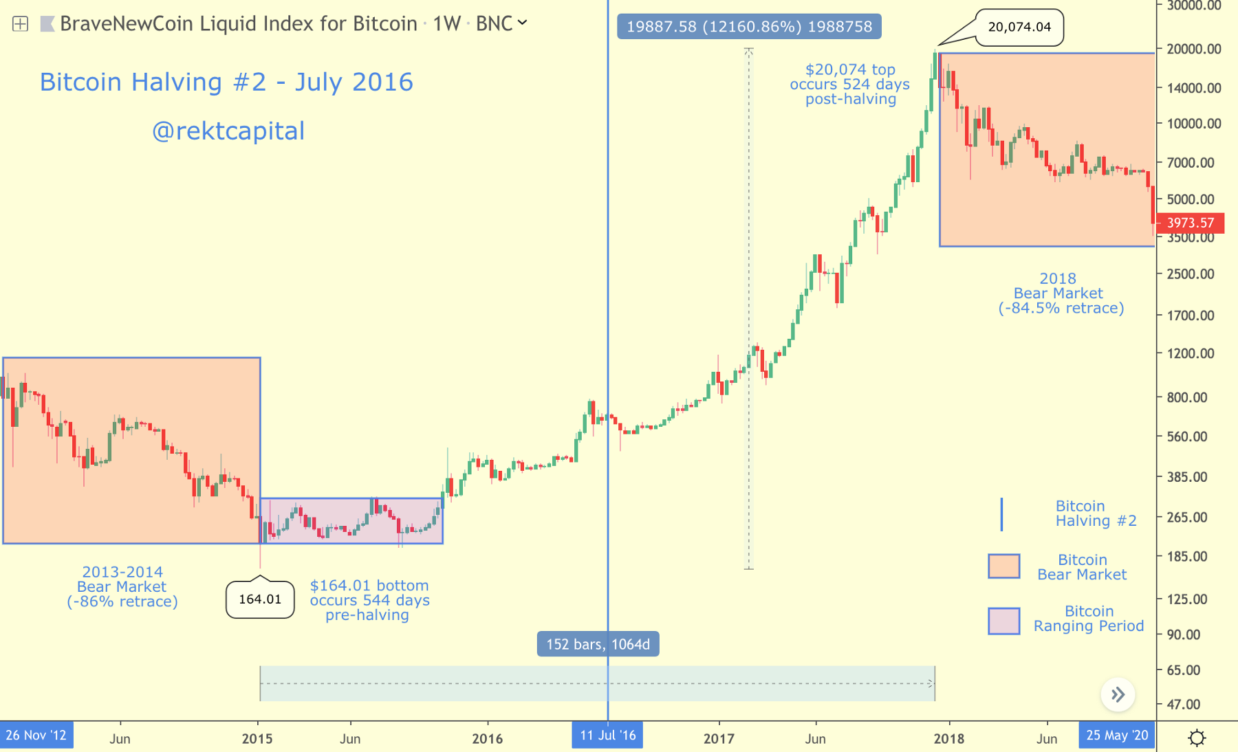 It took 1068 days for Bitcoin to rally over 12,000% from the $164.01 bottom to the Market Cycle top of $20,074.