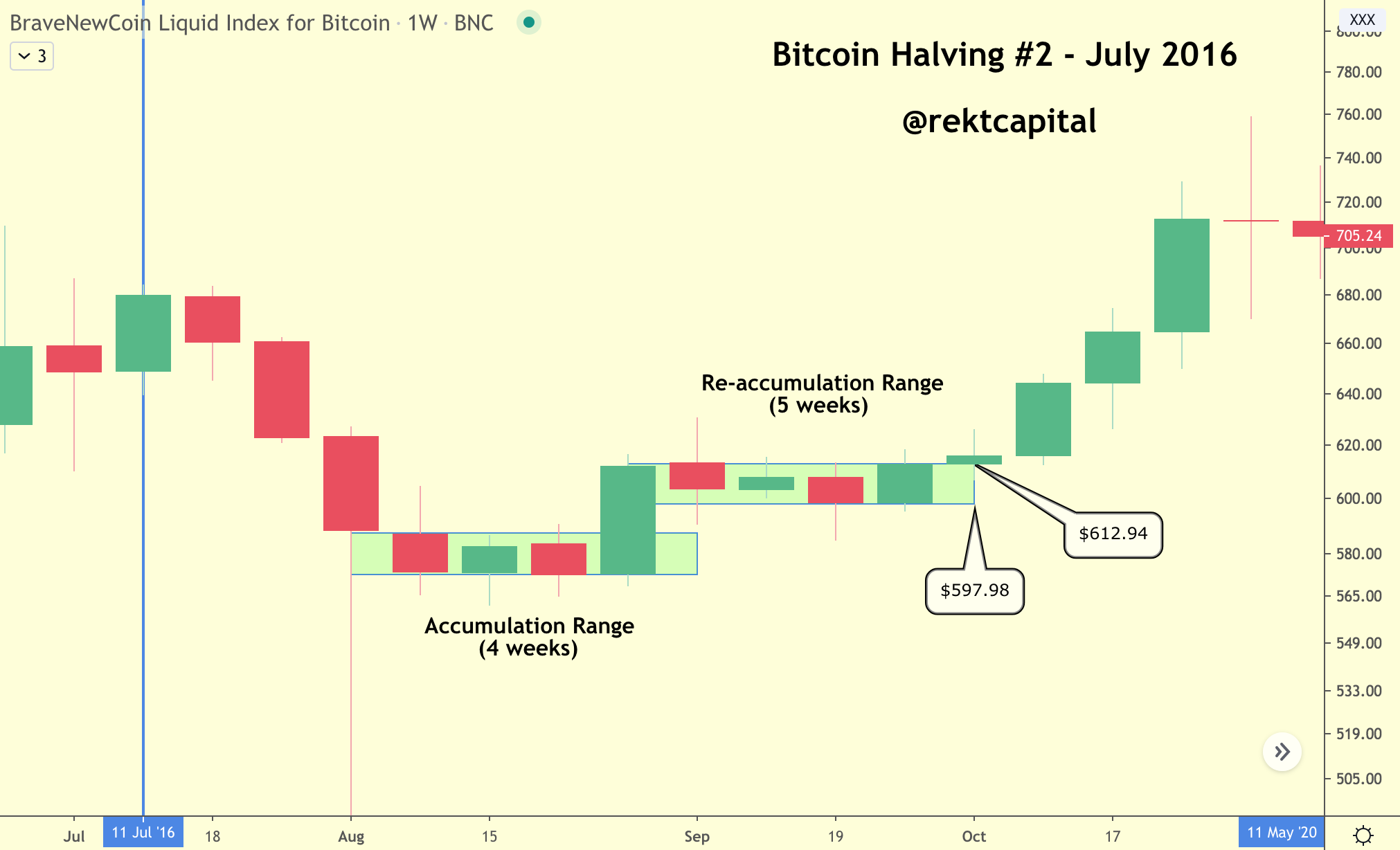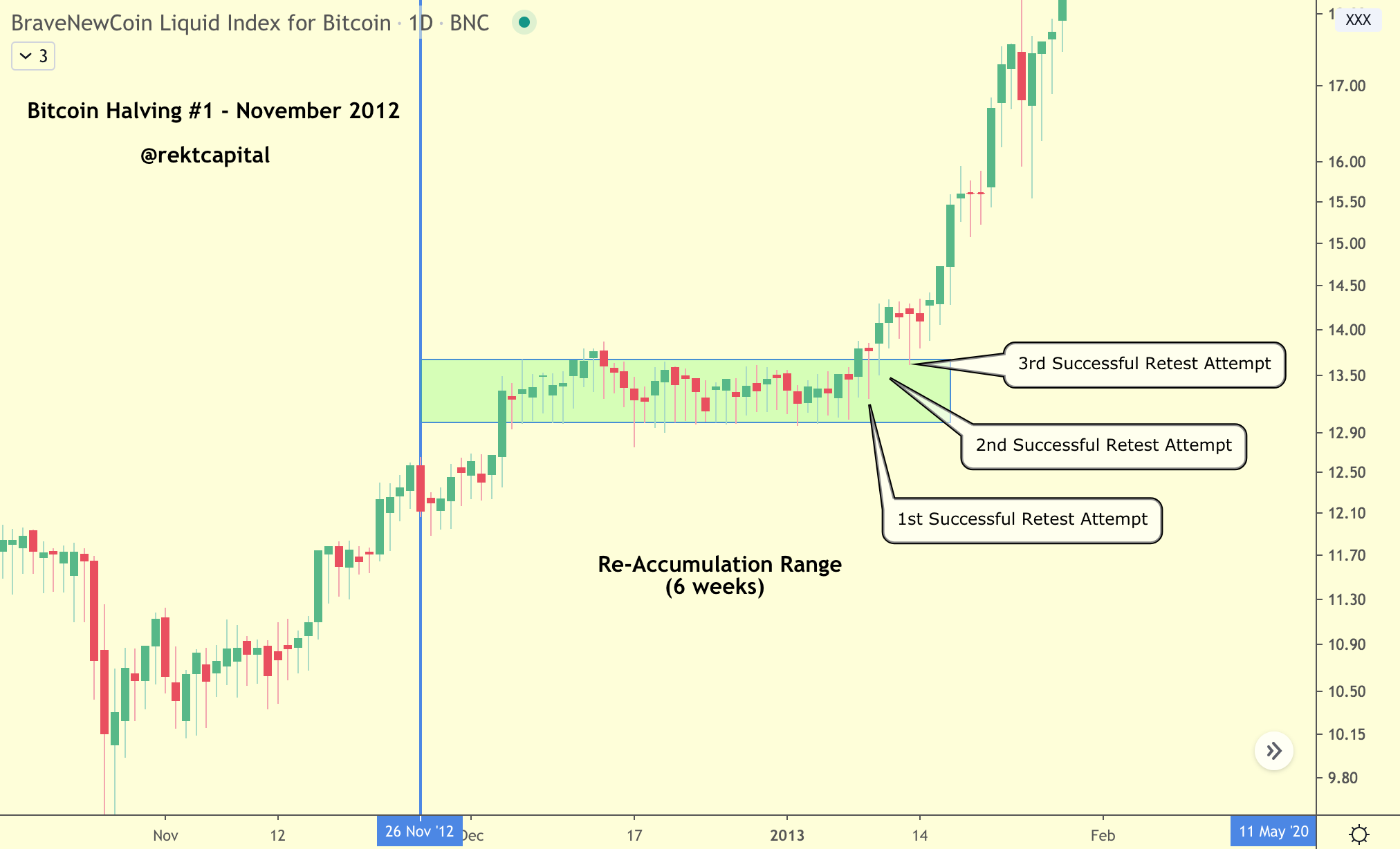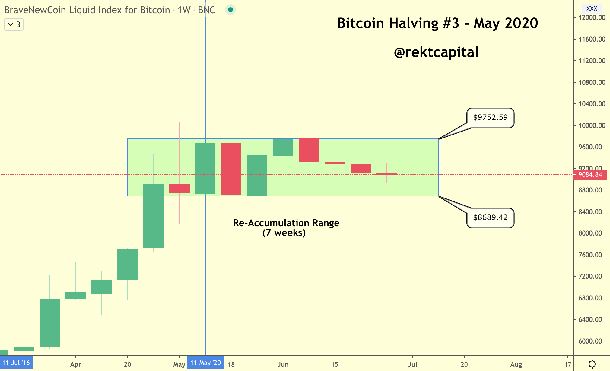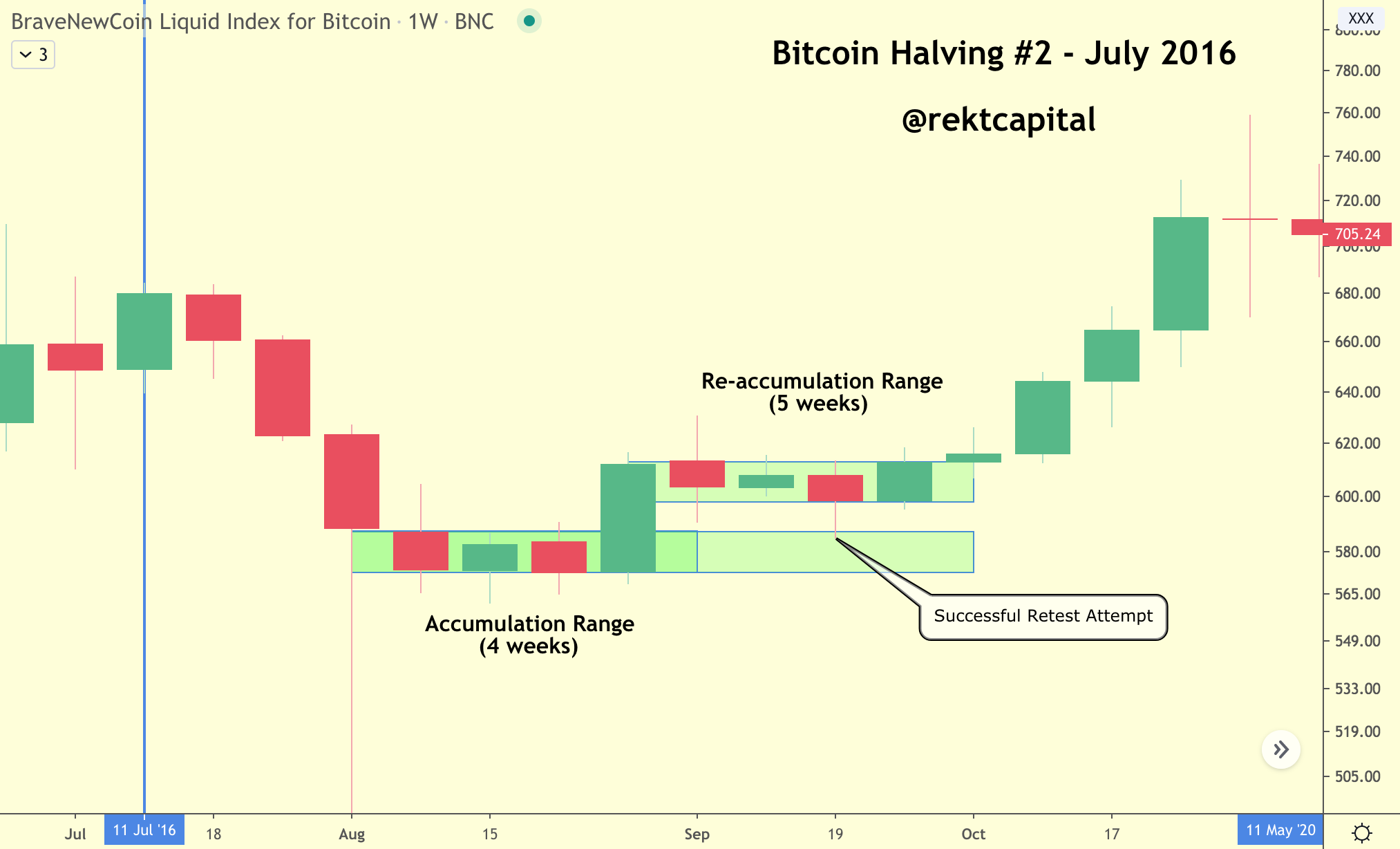 - Bitcoin formed a six-week Re-Accumulation Range after Halving 1