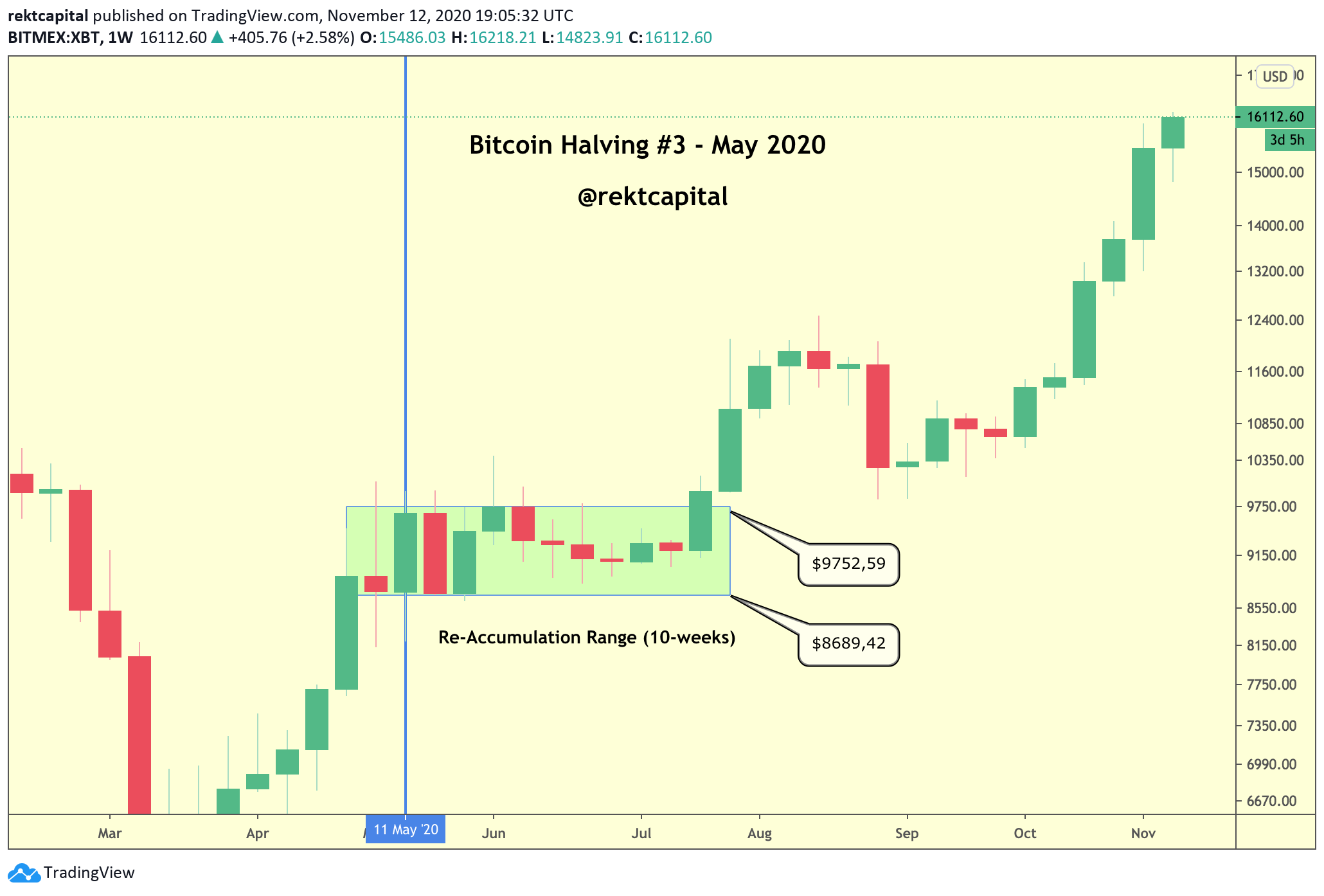 - Post-Halving consolidation (i.e. Re-Accumulation) has preceded new uptrends