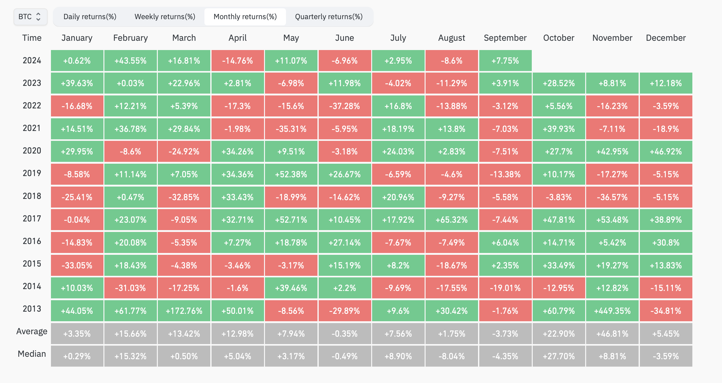 Before we talk about this recent rejection and what is means for the overall trend, it's worth noting that Bitcoin has experienced the best September of all time, getting close to ending the month at +7%: