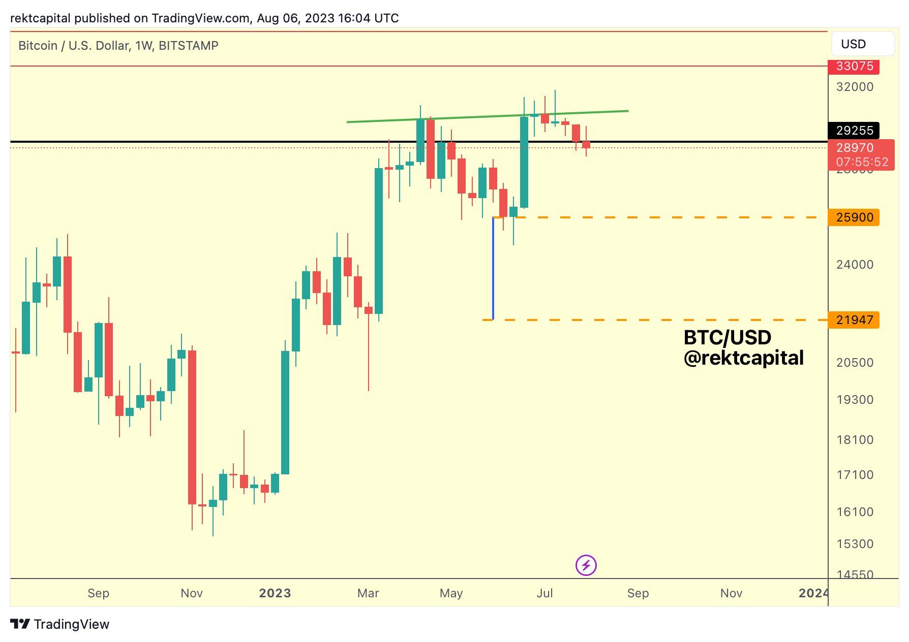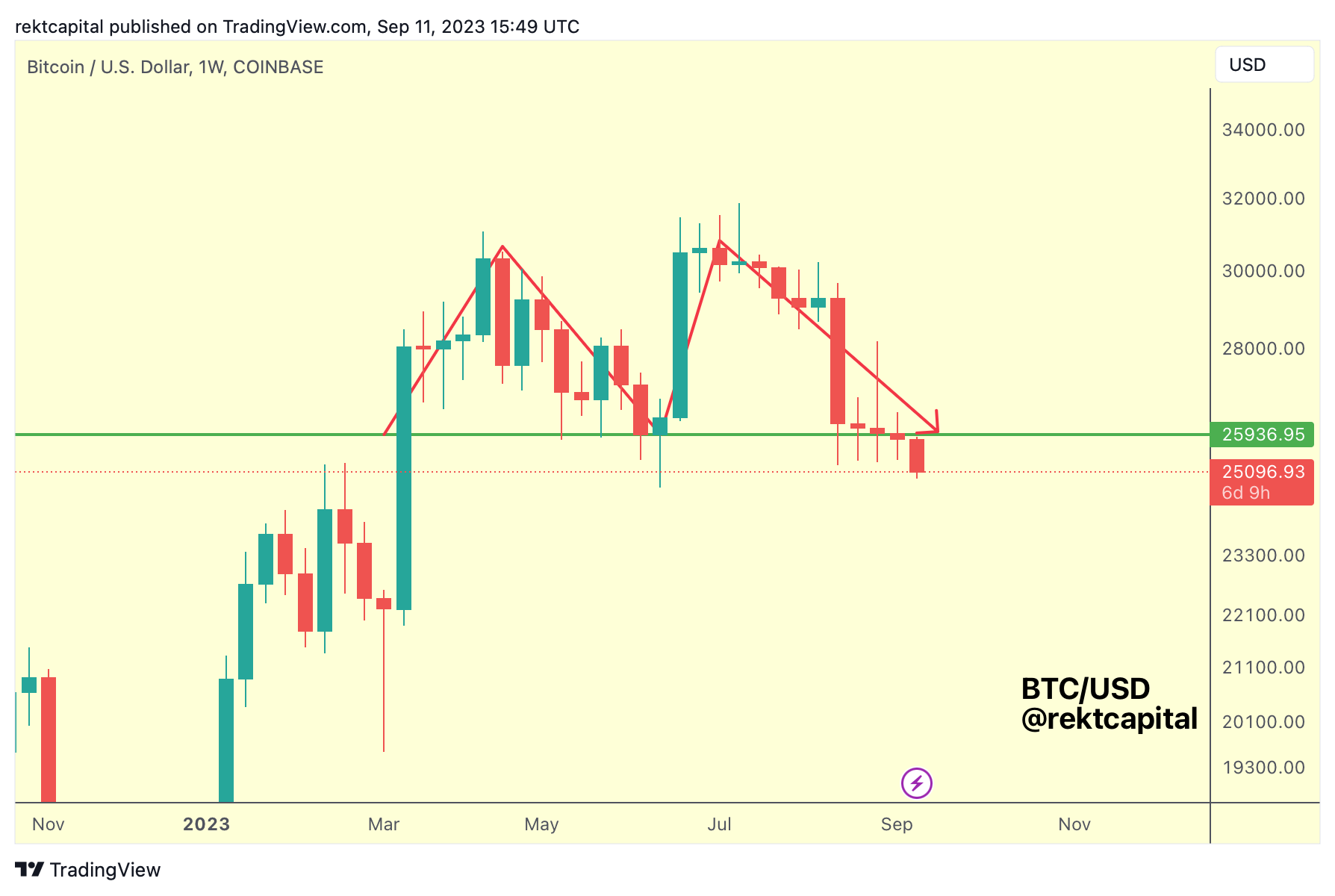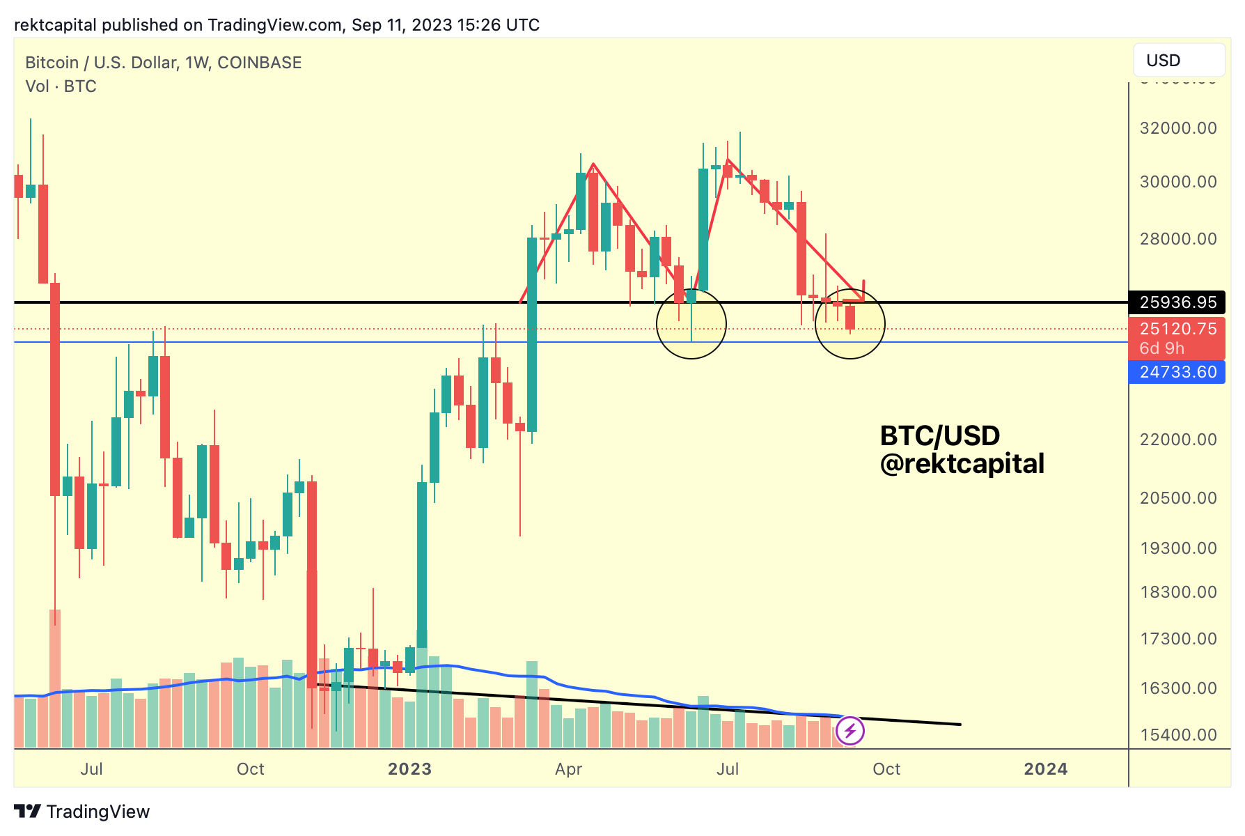 And the key to kickstarting this process was a Weekly Close below ~$26000 where then BTC flipped also this level into new resistance.
