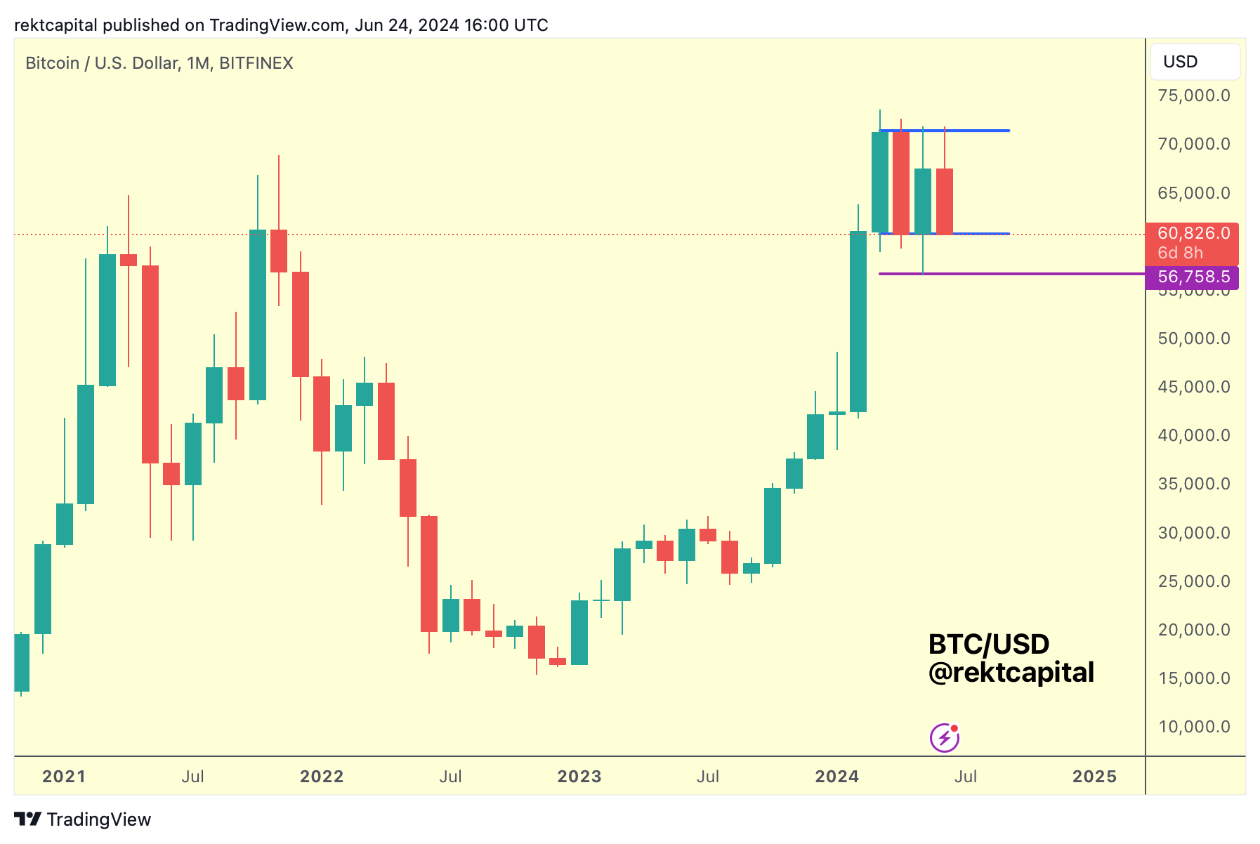Last month, Bitcoin downside deviated below the ReAccumulation Range to ~$56750 before finally Monthly Closing inside the Range.