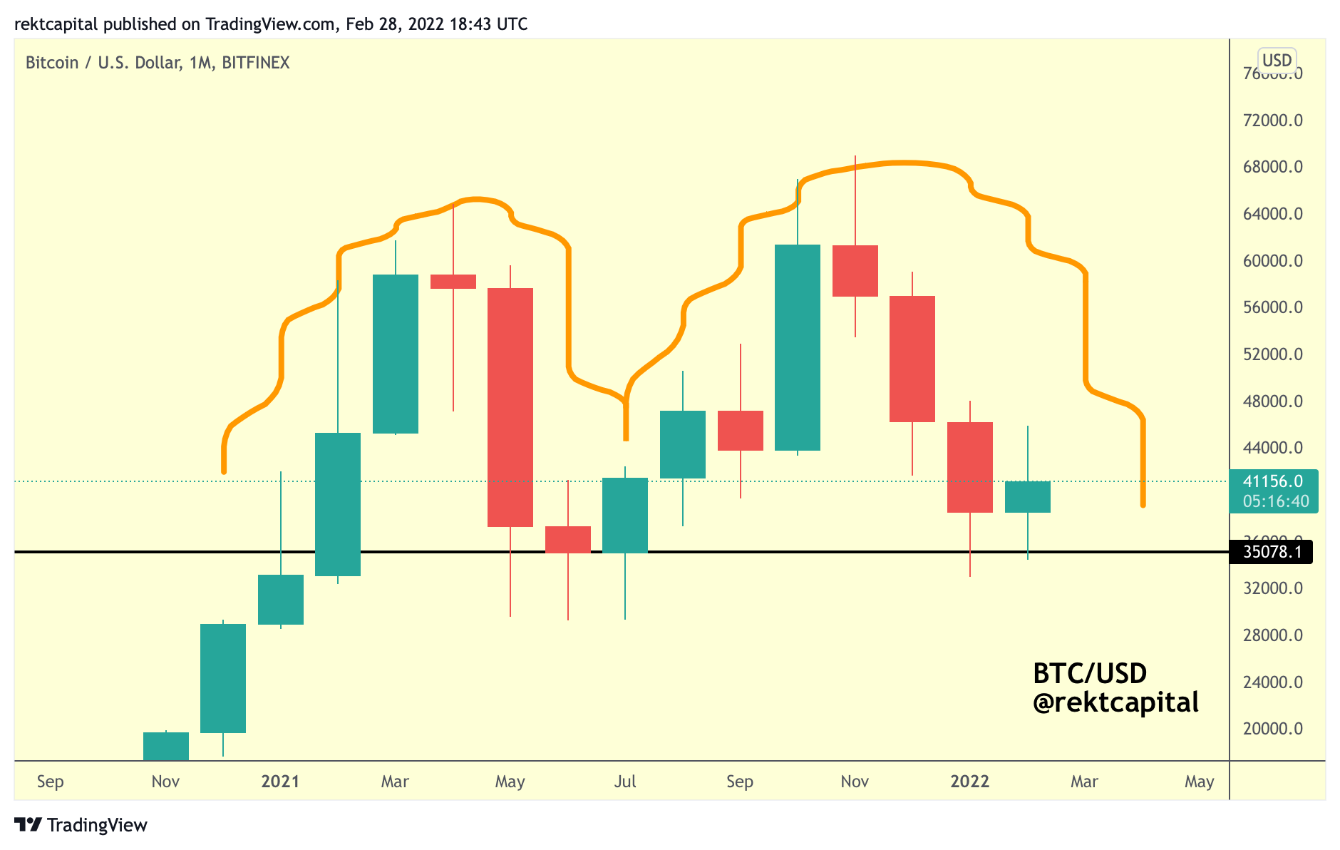 - Monthly Close above $35000 would bring the Double Top formation closer towards invalidation.