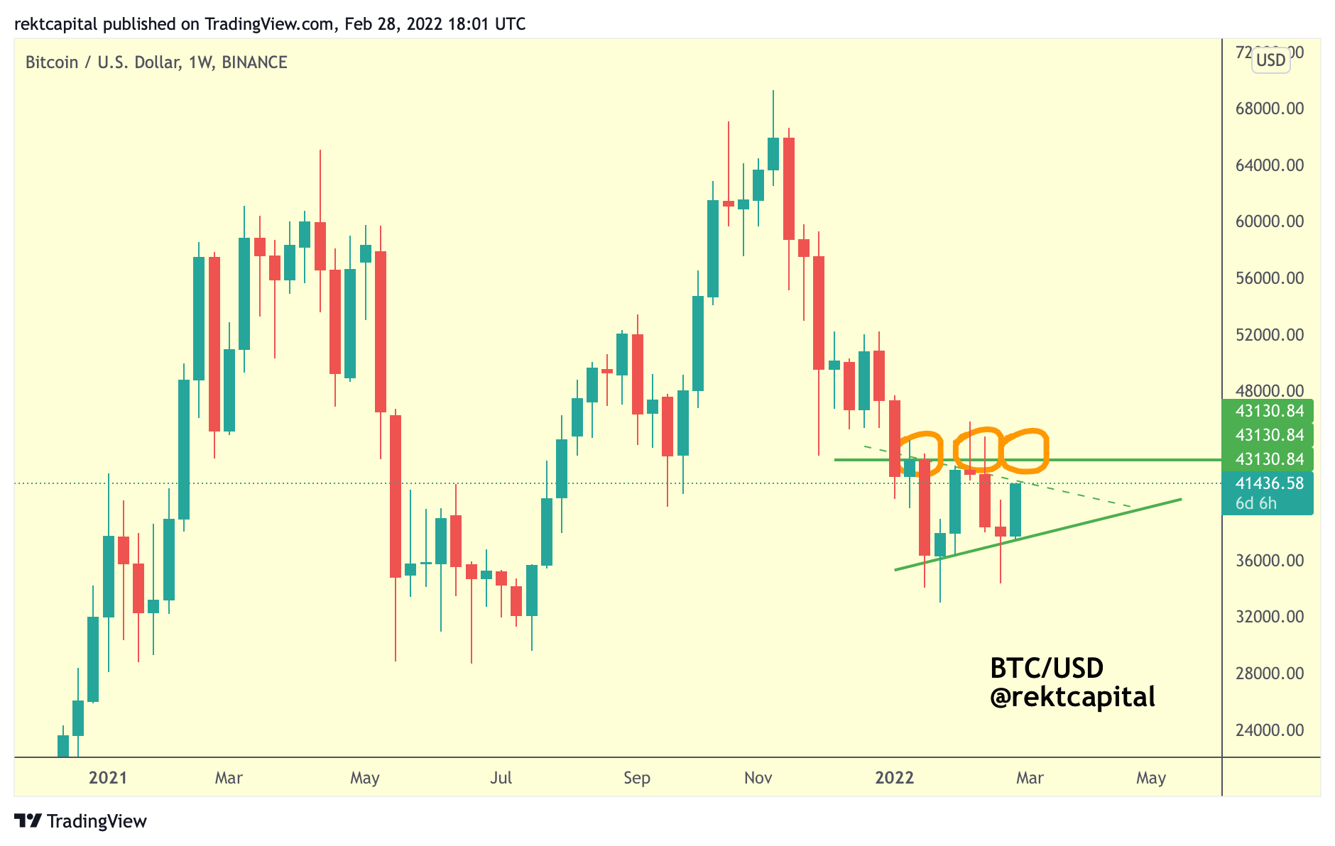 Because otherwise, Bitcoin could upside wick into the top of the Ascending Triangle resistance at $43100 and Weekly Close below the green dashed diagonal which would confirm the series of Lower Highs, in which case BTC would take on more of a flagging structure, with possible bearish ramifications upon loss of the newly established Higher Low.