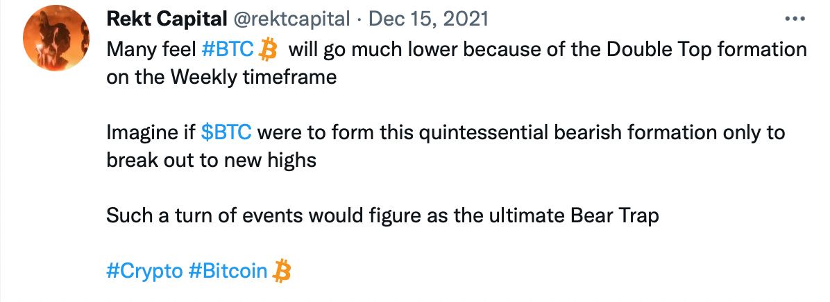 Which is why this past December I tweeted the same about the Double Top formation that is currently appearing on price: