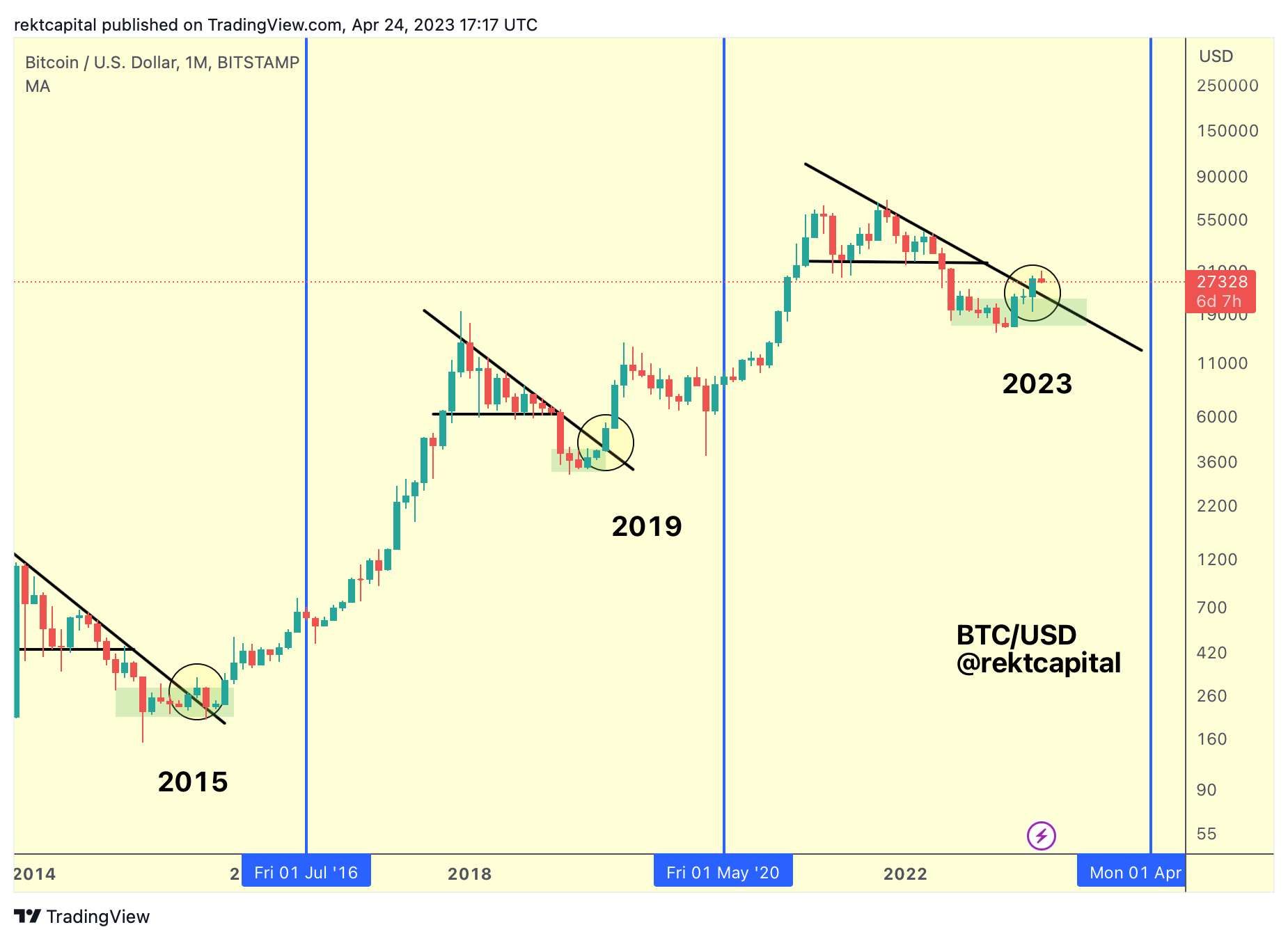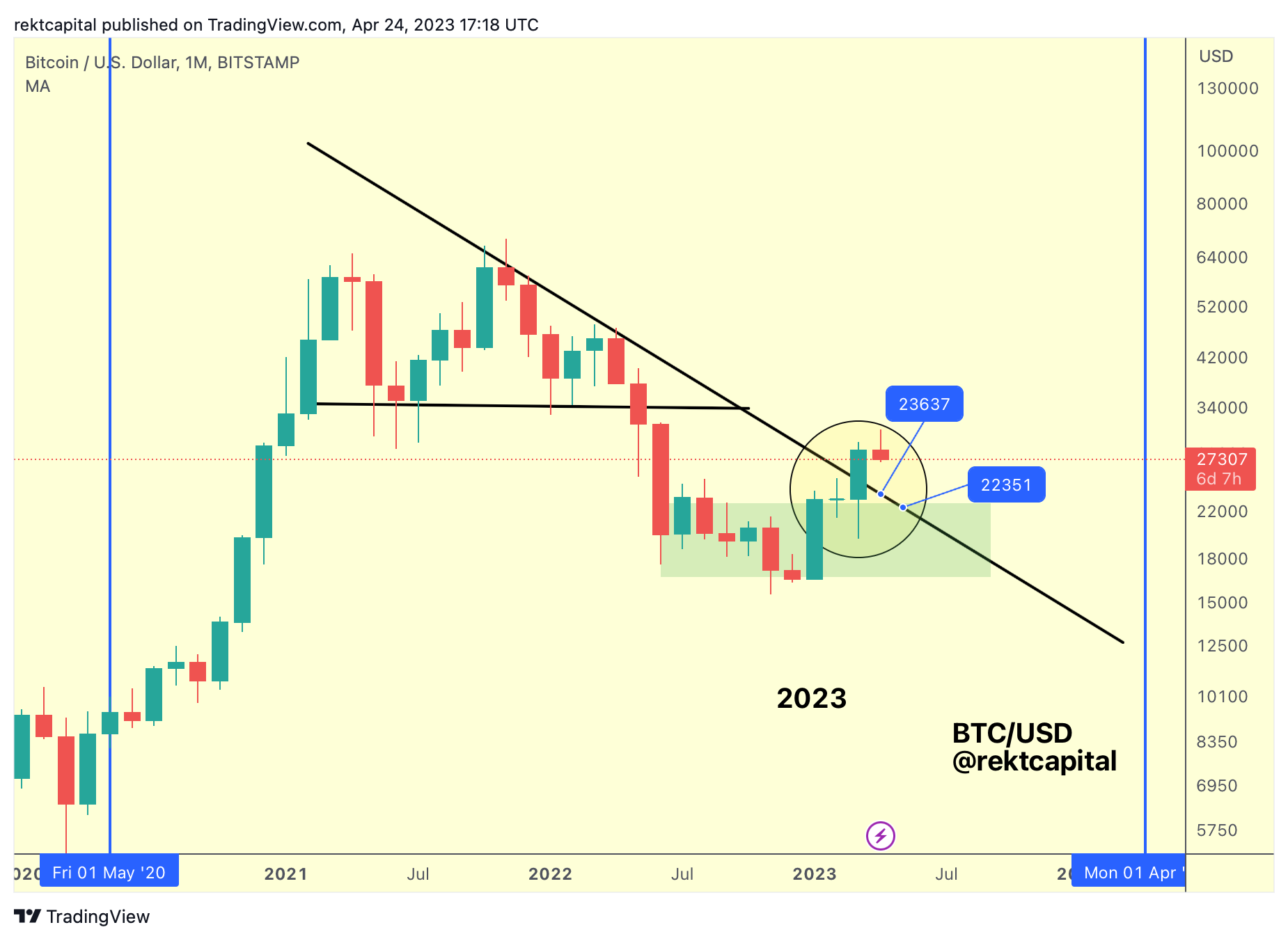 And if the retest occurs next month, then BTC could then drop to $22350 in May.