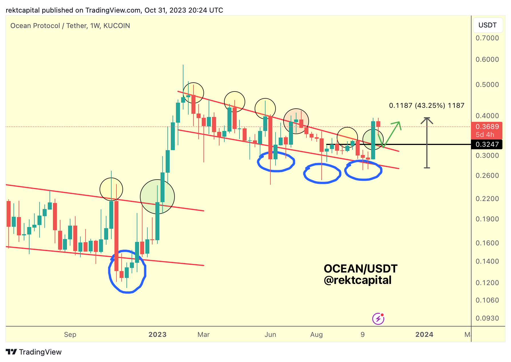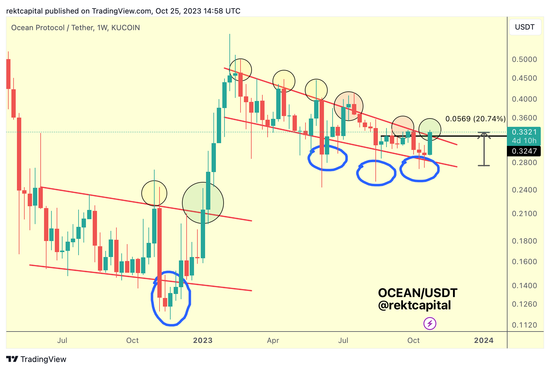 In the edition from two weeks ago in my Altcoin Watchlist, I covered OCEAN and discussed how a downside wick below the Channel Bottom followed by a reclaimed of the Channel Bottom would position OCEAN for a revisit of the Channel Top: