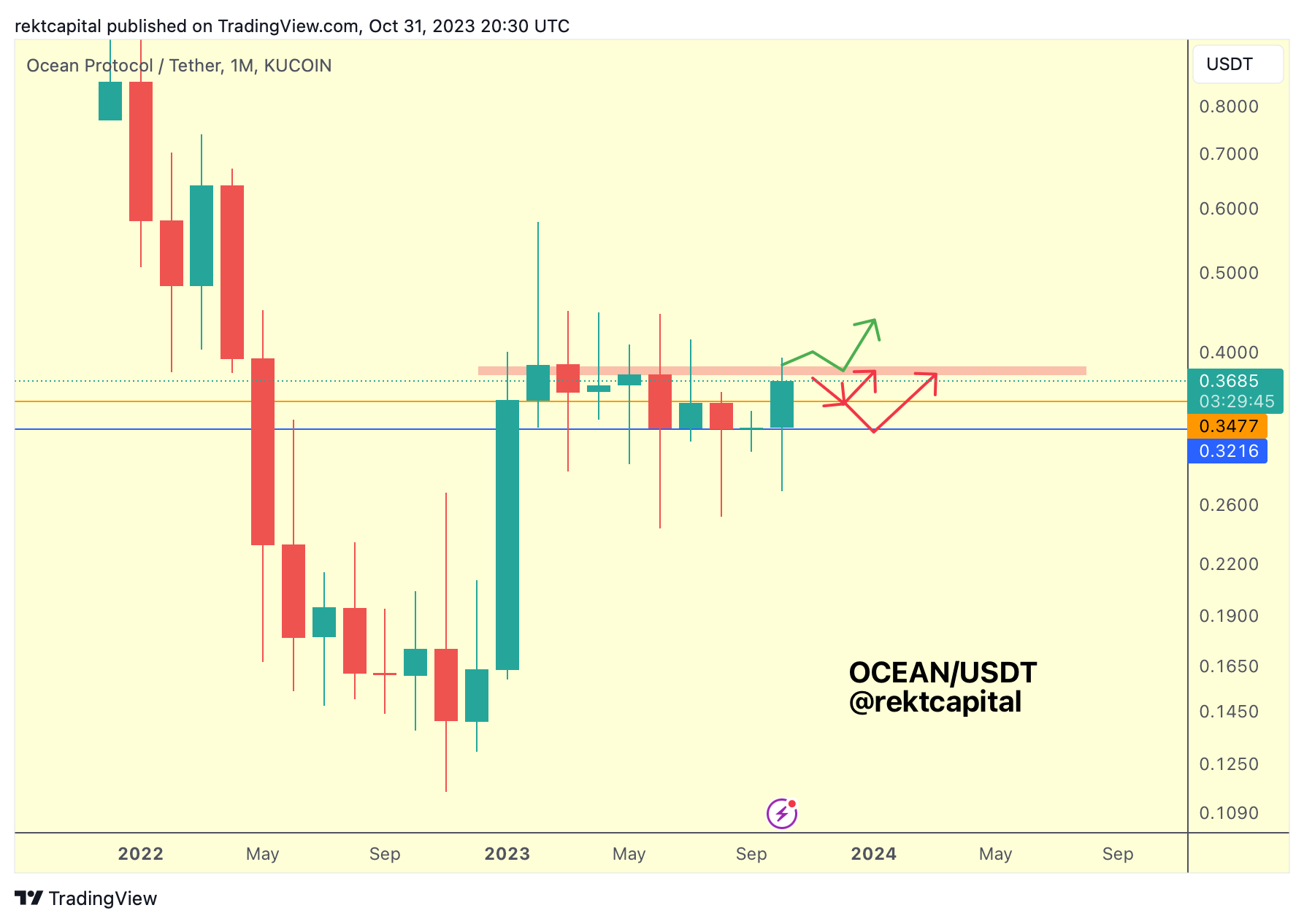 Breaking the red resistance area would be bullish as the next major resistance would reside around ~$0.50, but for OCEAN to rally that much, it would need to reclaim the red resistance area first.