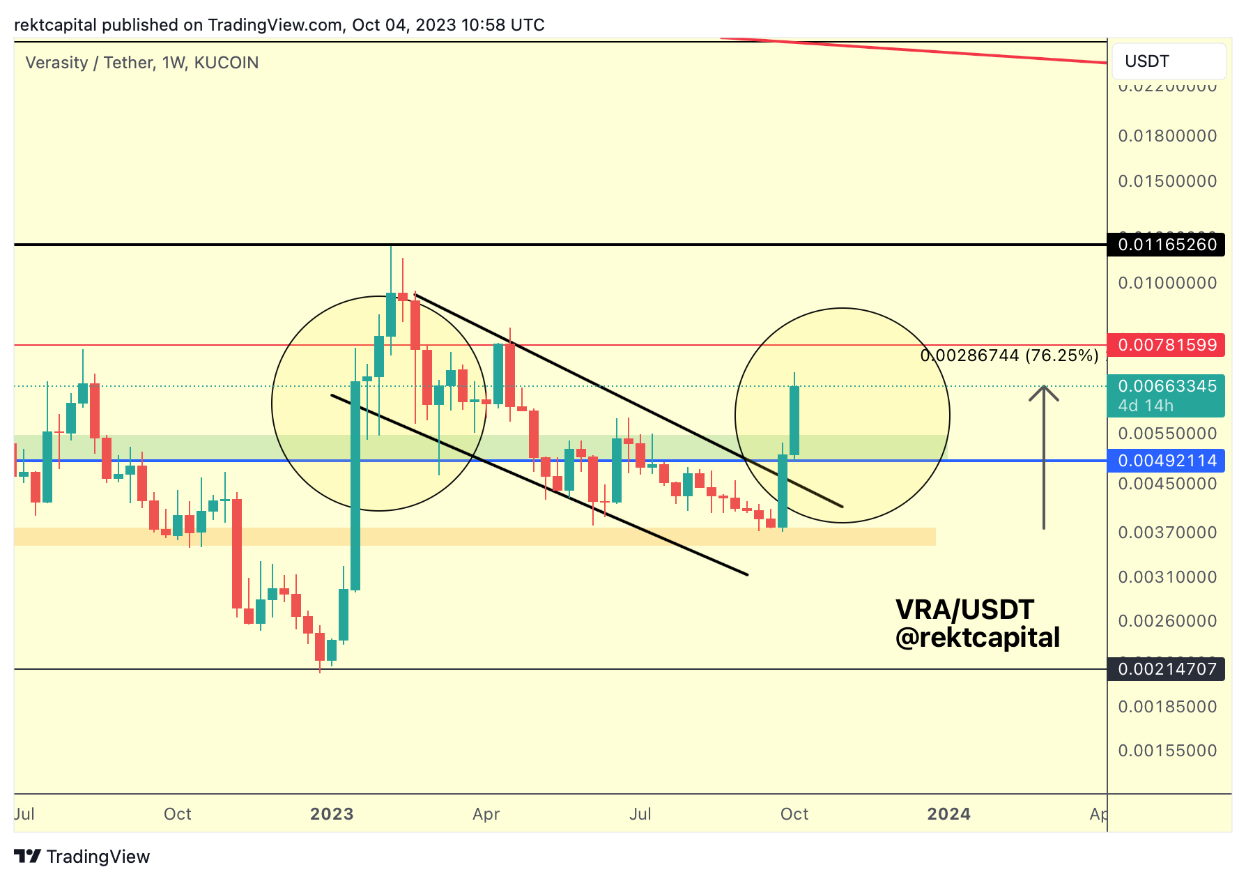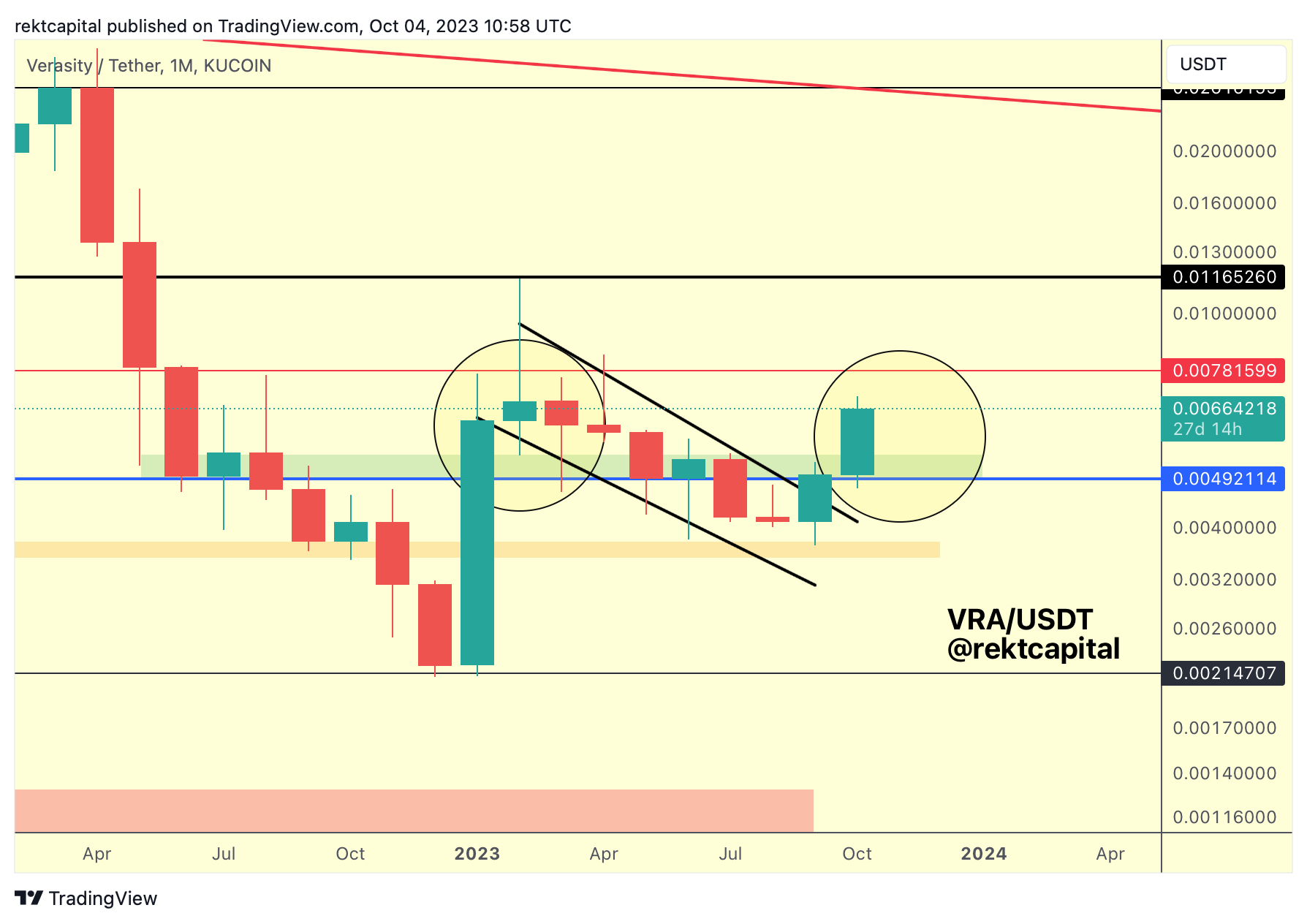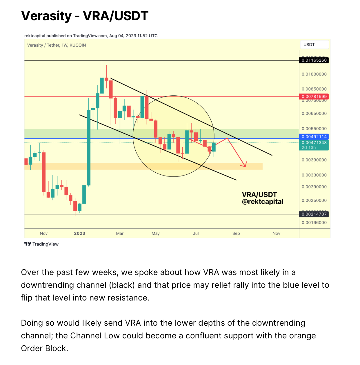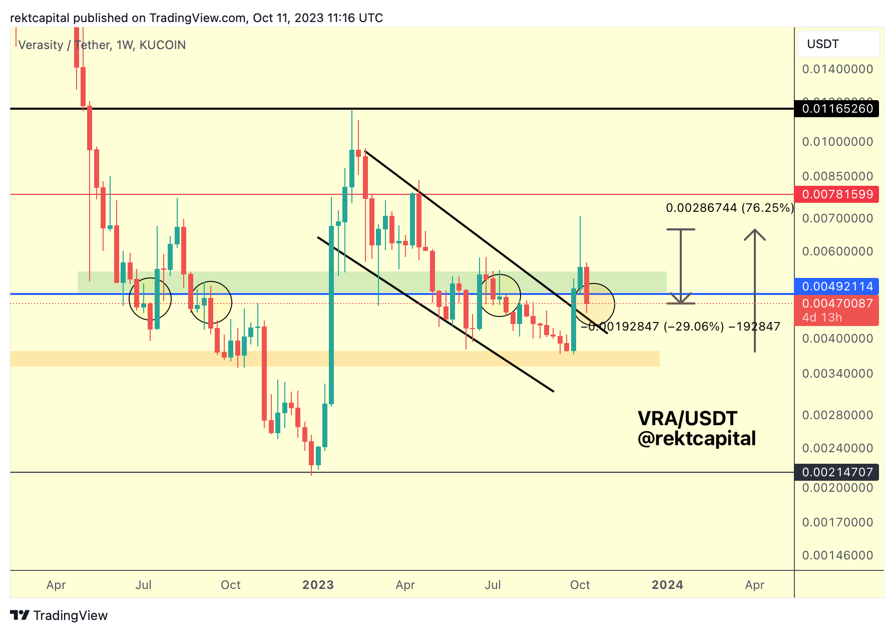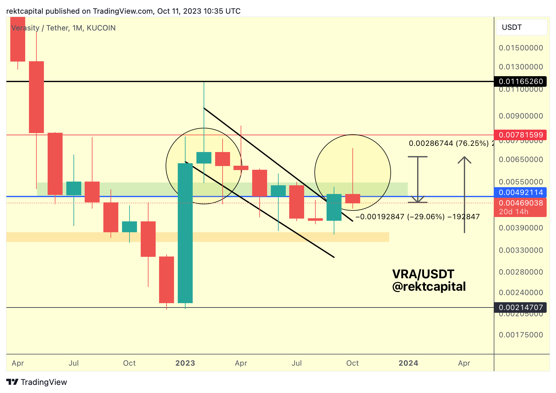 However, we still have multiple weeks for this reclaim to occur and given how VRA is a volatile coin, downside volatility below this blue level is possible.