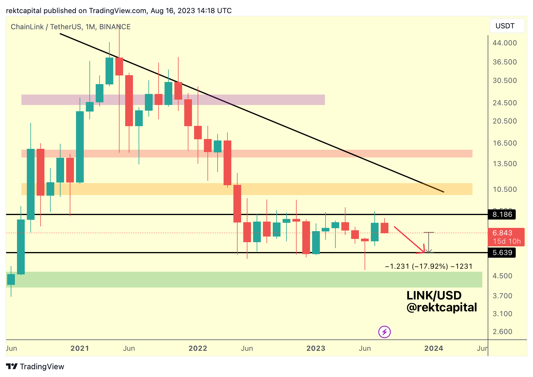 Over the past few weeks, we have periodically shared updates on LINK starting on August 16th where we assumed price would drop an additiona -17% to the downside to revisit the Range Low support: