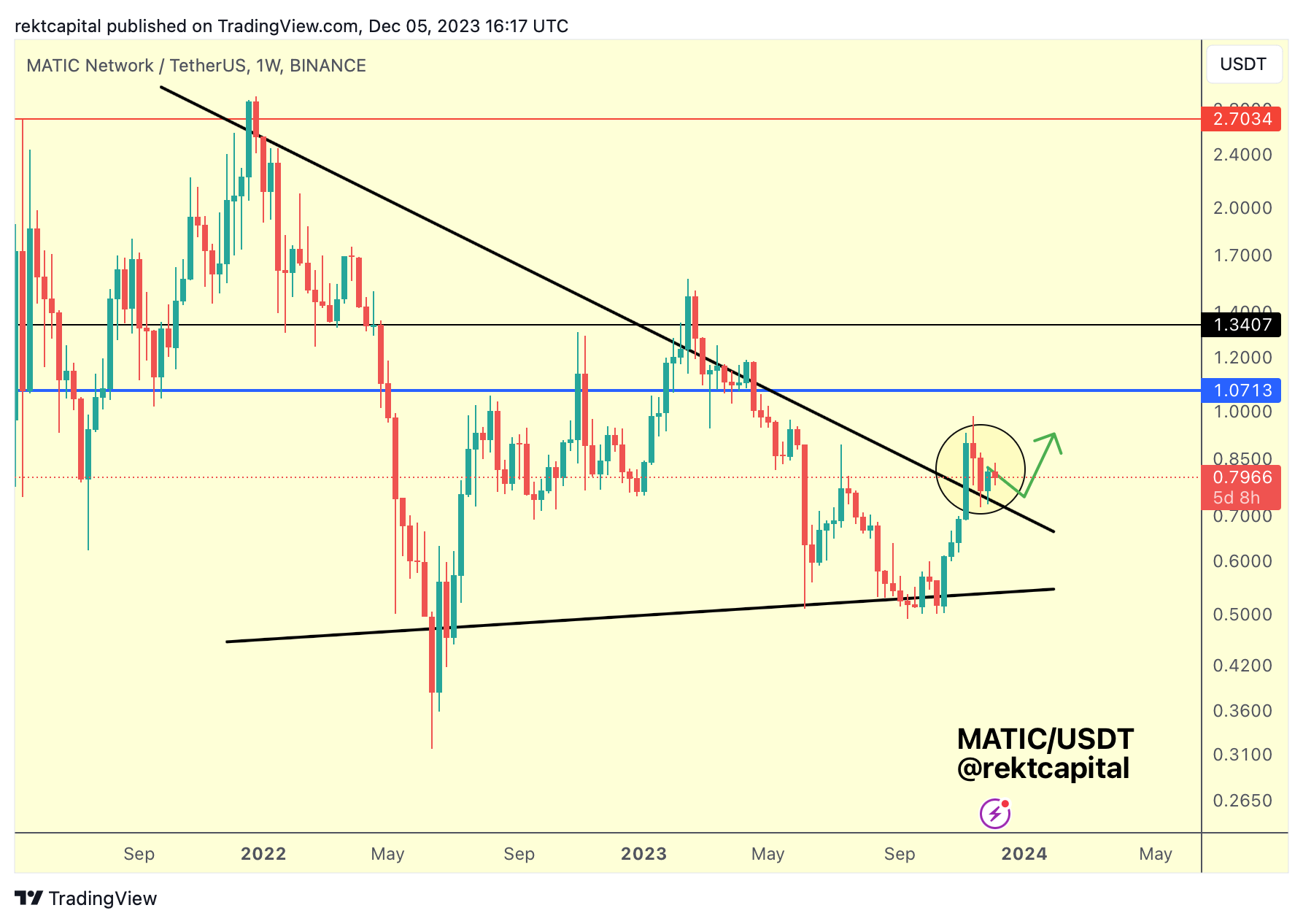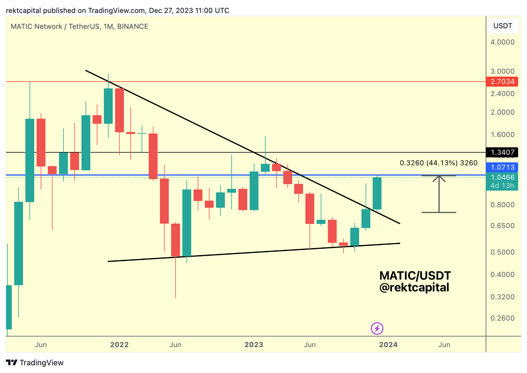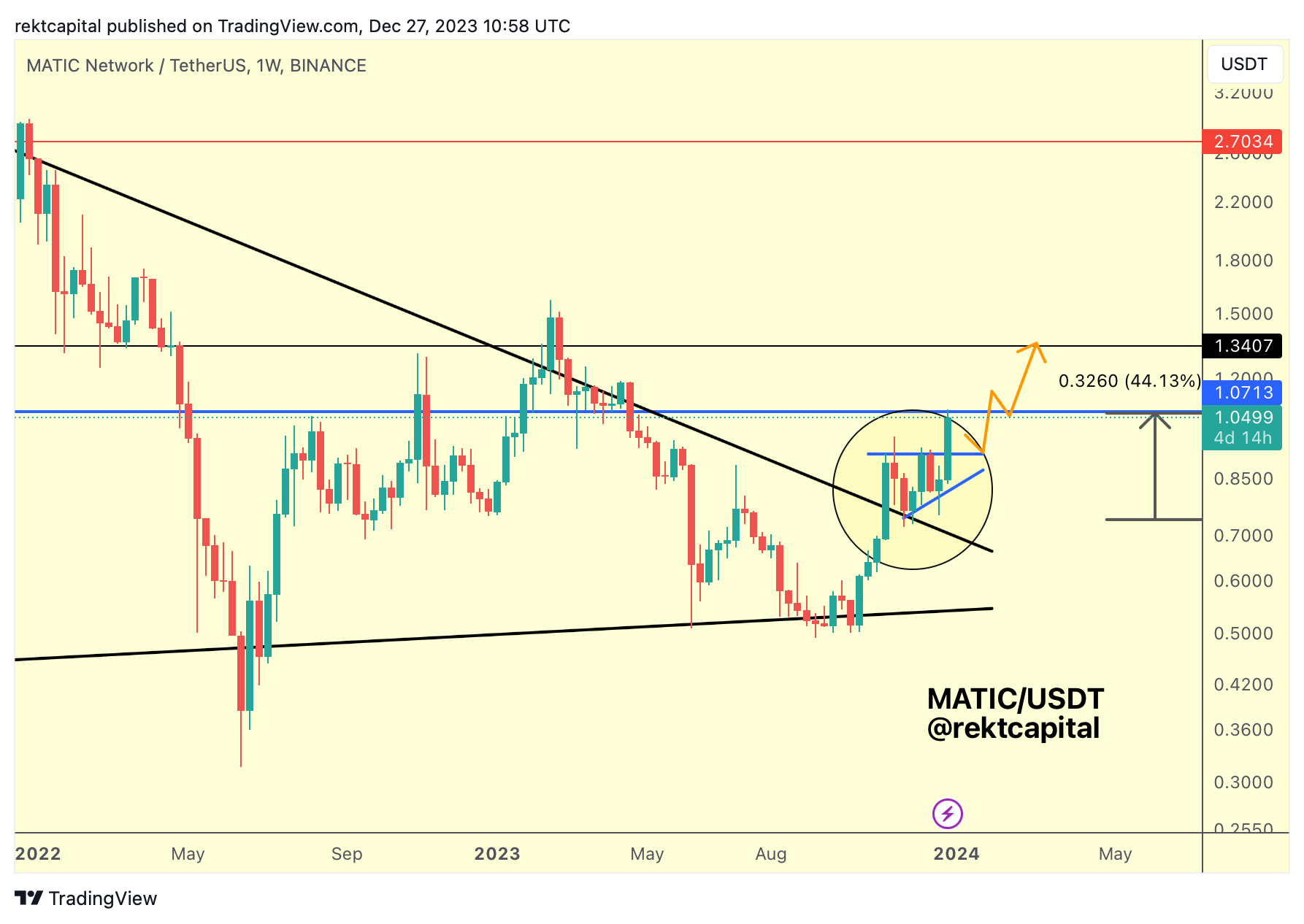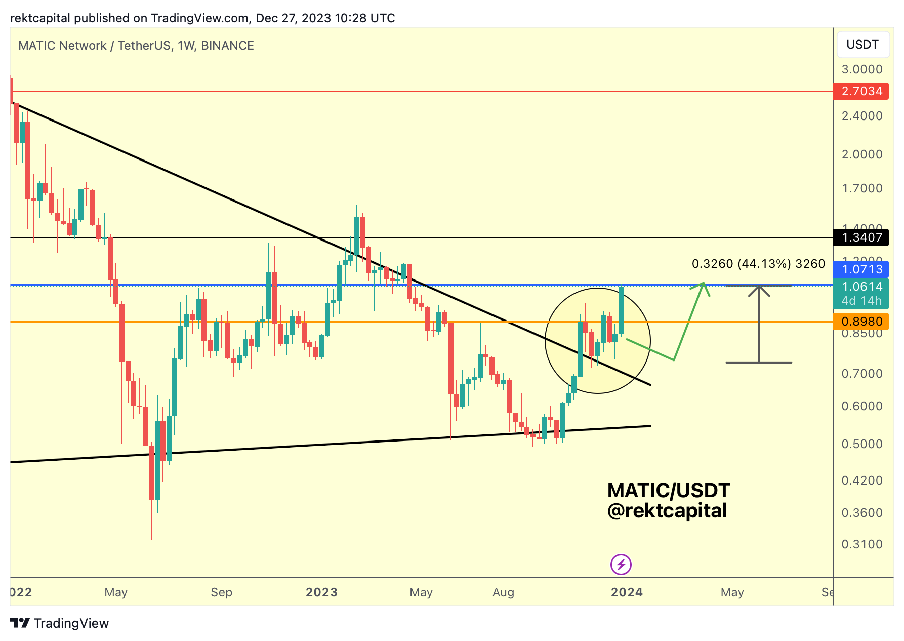 If MATIC is able to Monthly Close above the blue resistance of $1.07 then MATIC would be able to rally even higher without much interruption, especially since price has just broken out from its post-breakout re-accumulation period: