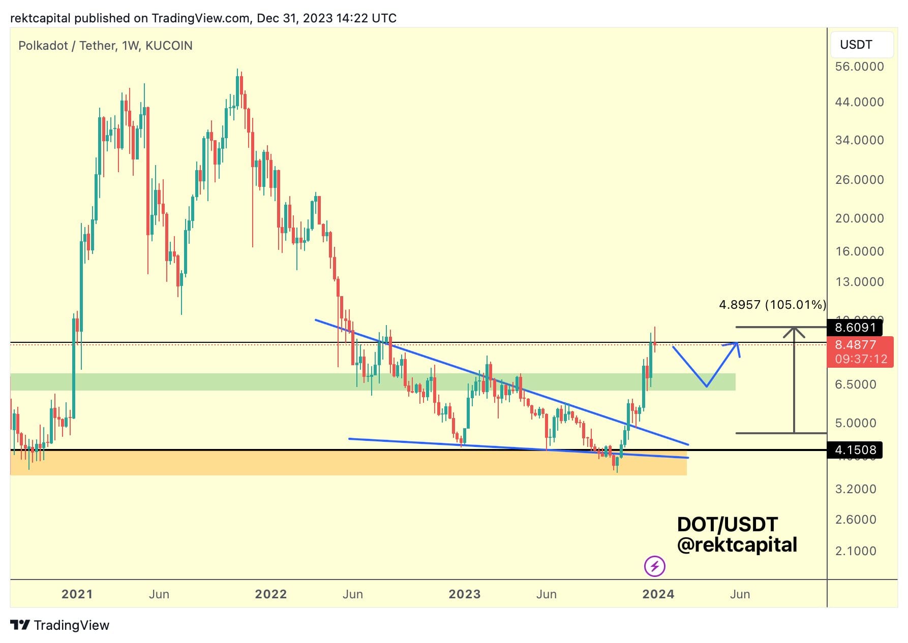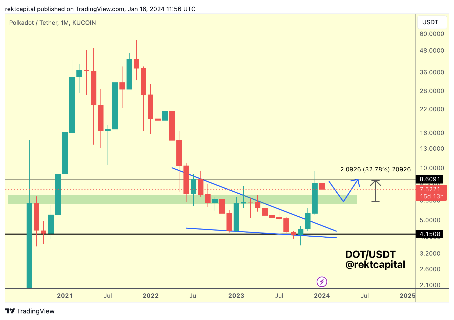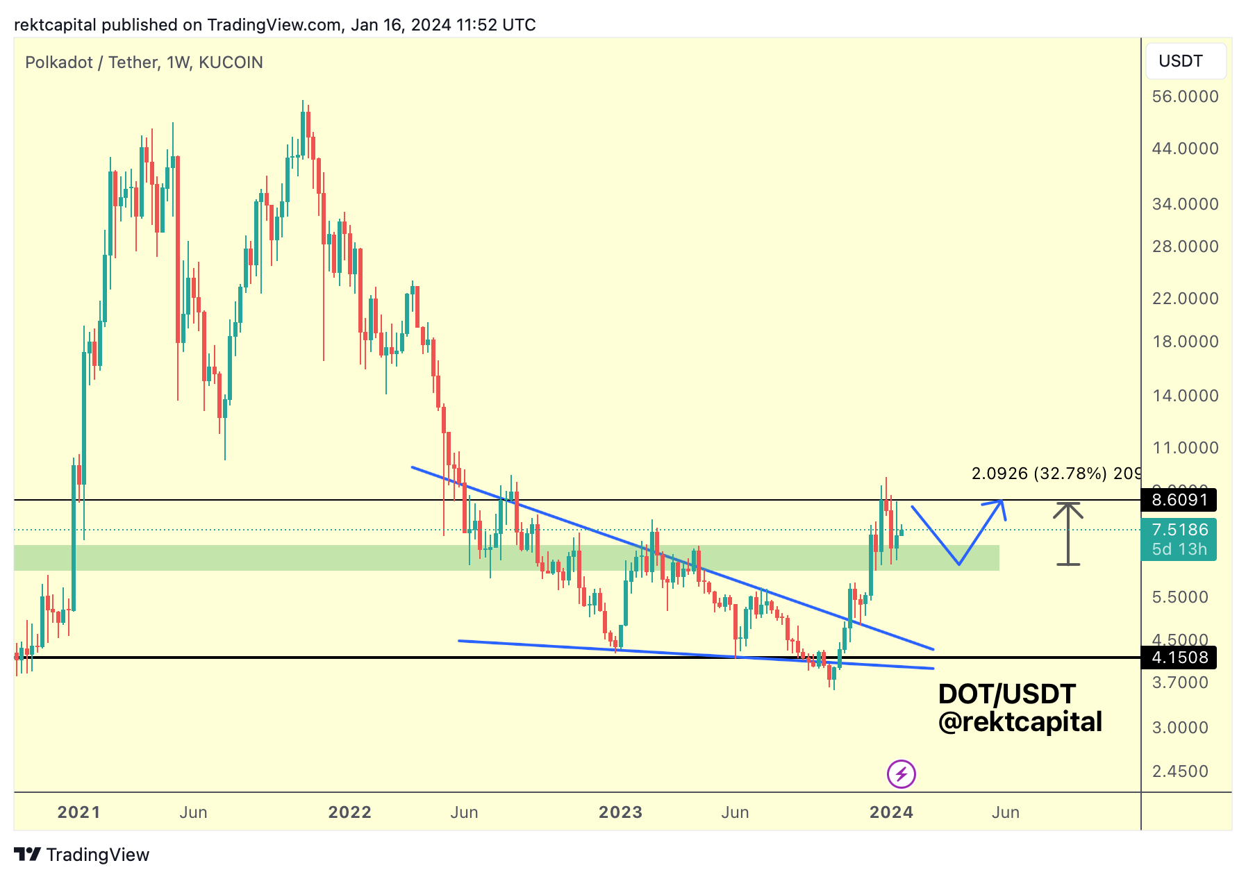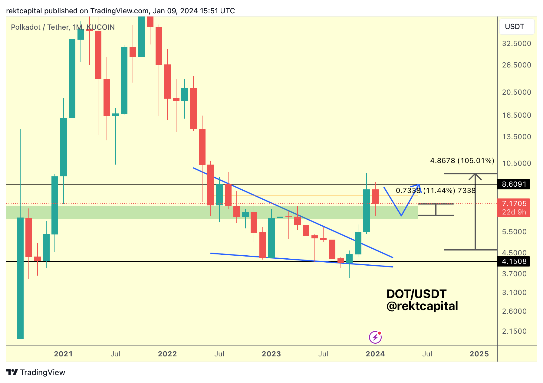 On Twitter (X), we spoke about how DOT would be going for a pullback into the green region in an effort to reclaim green as new support: