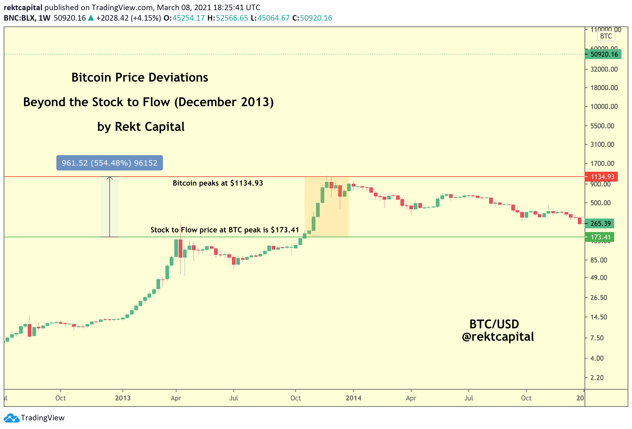 This means that Bitcoin’s price rallied approximately +554% beyond the Stock to Flow line:
